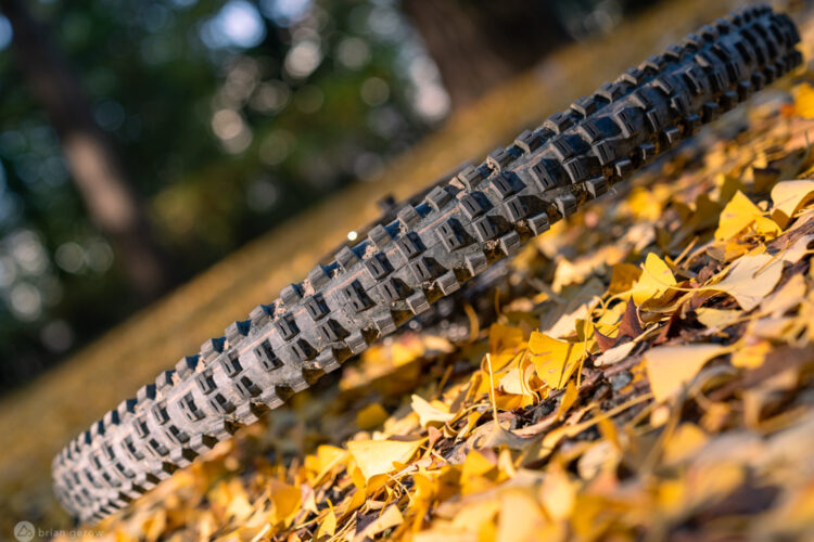 Looking at the tread pattern, the Vittoria Mazza features large, thick knobs spaced fairly far apart. Like the Maxxis Minion, Vee Snap, and Teravail Kessel. Two distinct pairs of center treads alternate around the tire, while two pairs of side knobs repeat in similar fashion. The Vittoria Mazza’s use of siping on each knob stands out among other similar tires, allowing each knob to flex and conform to the terrain in a specific way. On the side knobs in particular, Vittoria adds three sipes of varying lengths and widths.