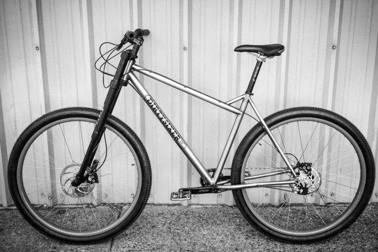 The DirtySixer hardtail mountain bike rolls on 32-inch wheels.