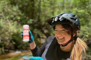 Hillary checks out a new flat pedal mountain bike shoe for women by Ride Concepts.