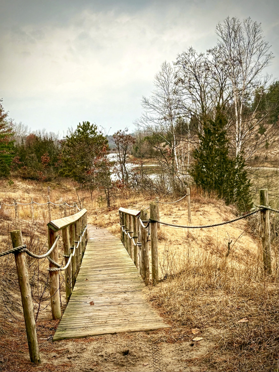 Large area of winding trails through hilly sand dunes and forests. Various single and double track cut through and around winding rivers and campground trailer parks