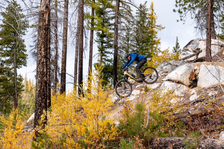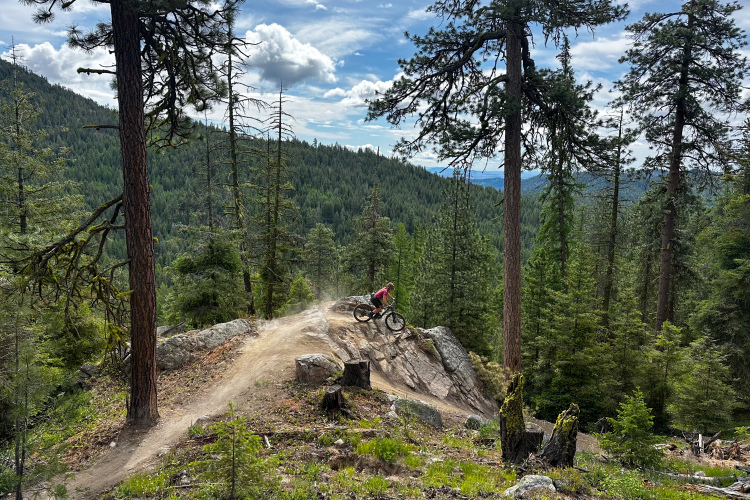 The trails at Loup Loup deliver a variety of experiences for all types of riders. Oh Bother, a 1.7-mile advanced descent, gives riders three trail experiences in one: the upper section is technical, transitioning into straight flow before ending with a progressive style trail. The system incorporates both machine-built and hand-built features that work with the natural terrain, using the rocky landscape and granite slabs to create engaging lines. Trails like Fozzy Bear Inventions, the rehabbed Telemark trail, and the descending trail Ursus round out the current offerings.