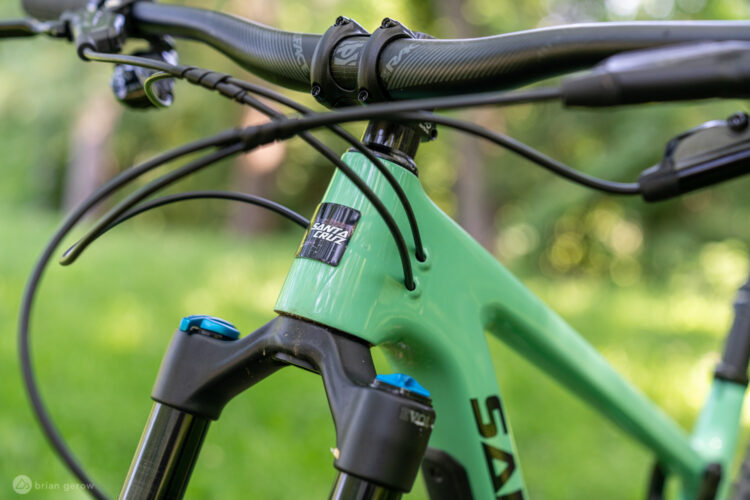 The Subrosa bars fit and feel great. For an alloy bar, I was impressed at the balance between a stiff feel and forgiveness. The compromise was right there–when I hit the washboard sections of trails, there was just enough dampening in the bar that it didn’t numb my hands (with gloves on). On the bigger hits, again, I was appreciative of the give the bars had. Now on the technical trails, the 747mm width was close at times. I guess the cut trails up around here are… ummm… a challenge. Yeah let’s call it that. With a bar that wide, there are sections where, at times, you may clip a branch or two. But it’s a fair trade-off for laser-like control.