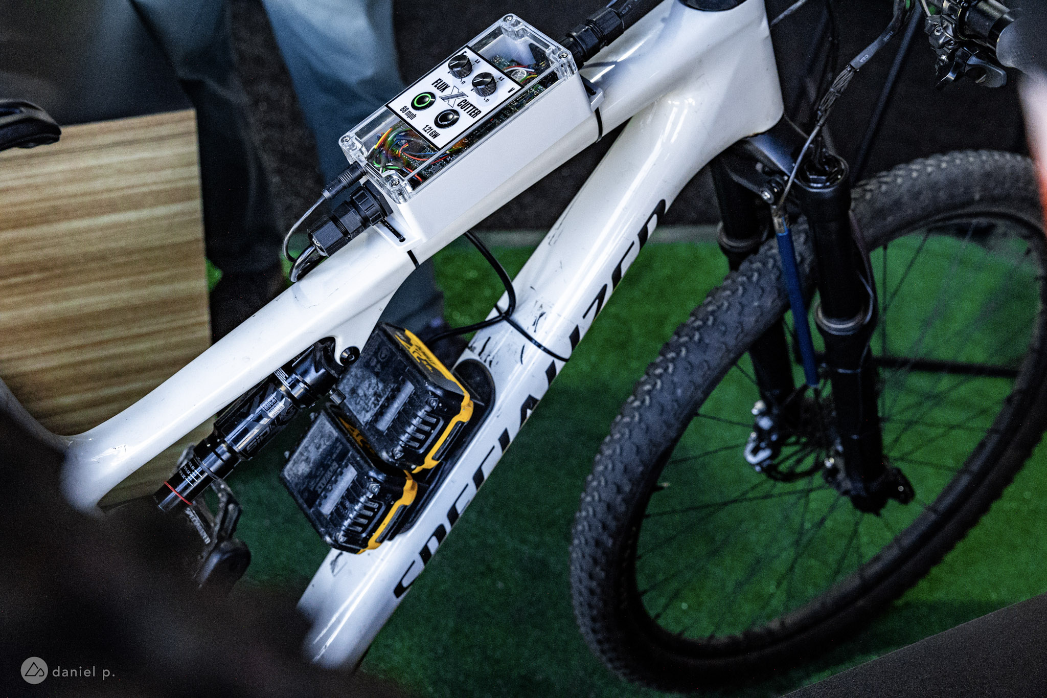 “By eliminating the oil from a traditional damper and instead injecting or extracting power from a linear motor, Fluxcutter has complete control over the forces as you ride,” according to inventor Nigel Wade. “It acts in compression, rebound, high speed, and low speed to give the ultimate control on the trail, no matter the situation. Smart algorithms monitor the terrain as you ride and adjust the damper a thousand times a second to ensure you have the right damping to ensure comfort, grip, and a good time.”