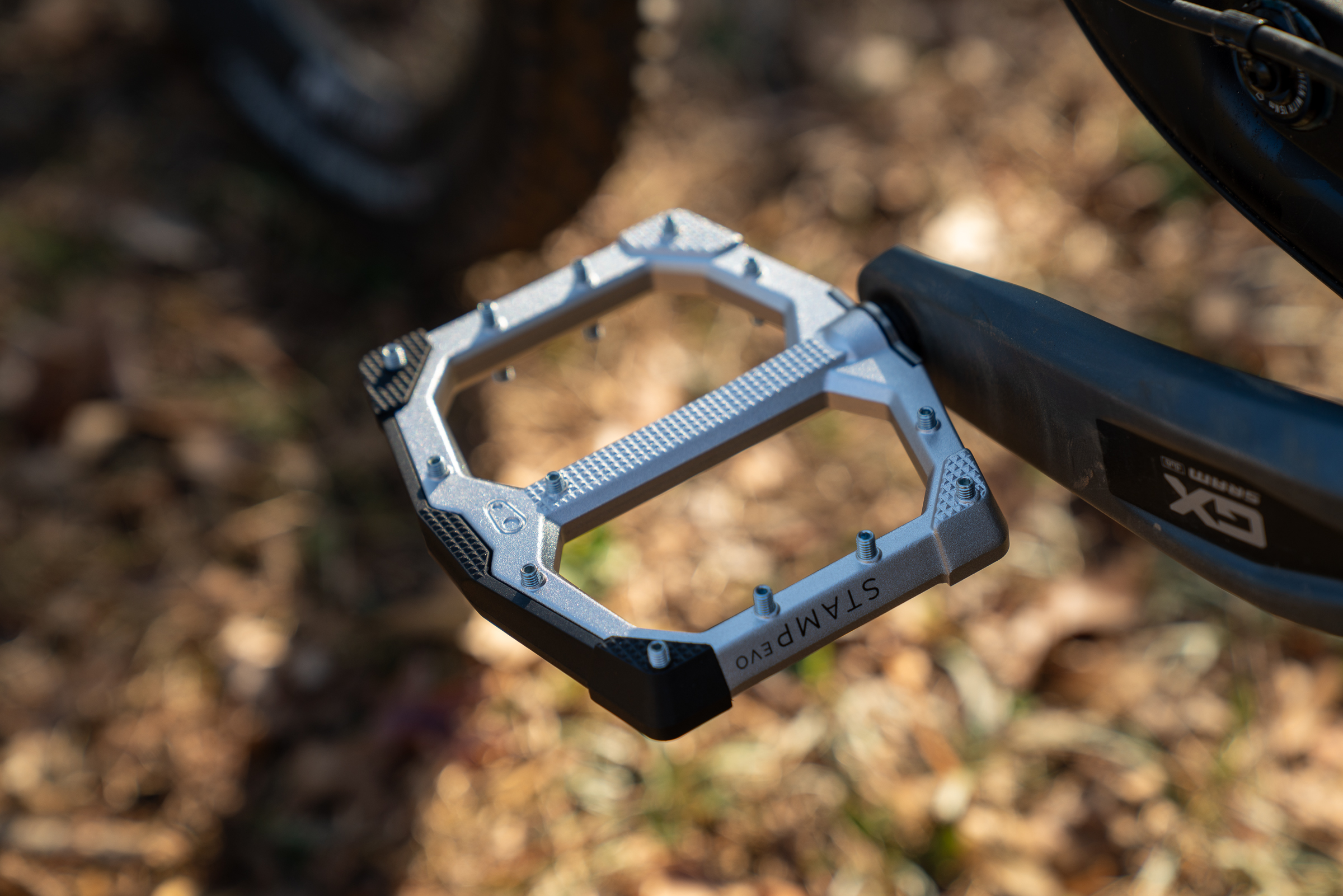 Even though I’m sure the pedal geometry checks out, on the trail, I really didn’t have to make any adjustments based on the larger platform. I experienced no more pedal strikes than usual, likely because the height and width of the Stamp Evos isn’t all that different from the other pedals I’m used to. It’s the length of the pedal that truly stands out.