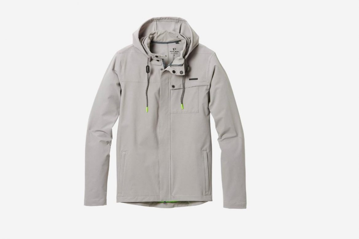 This hooded jacket is made from 88% recycled polyester and has a magnetic, deployable drop tail for commuting.