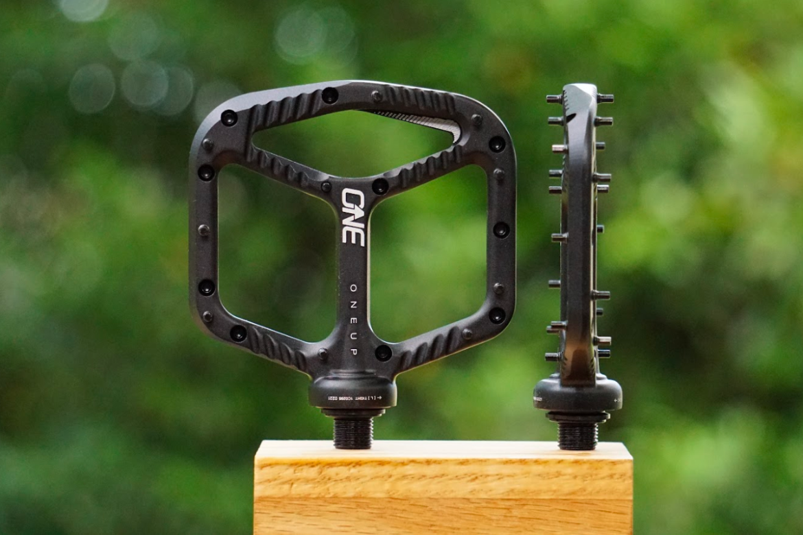 OneUp aluminum pedals are a top pick when it comes to flat pedals for their excellent grip and clean aesthetic. Get a pair in your favorite color for 20% off. Read more.