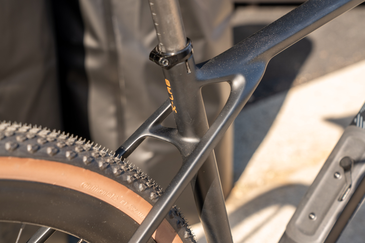 The GT8 features a full-carbon frame with 55mm tire clearance and in-frame down tube storage. The seat stays are specially designed to “balance strength, compliance, and precision handling,” according to X-LAB.