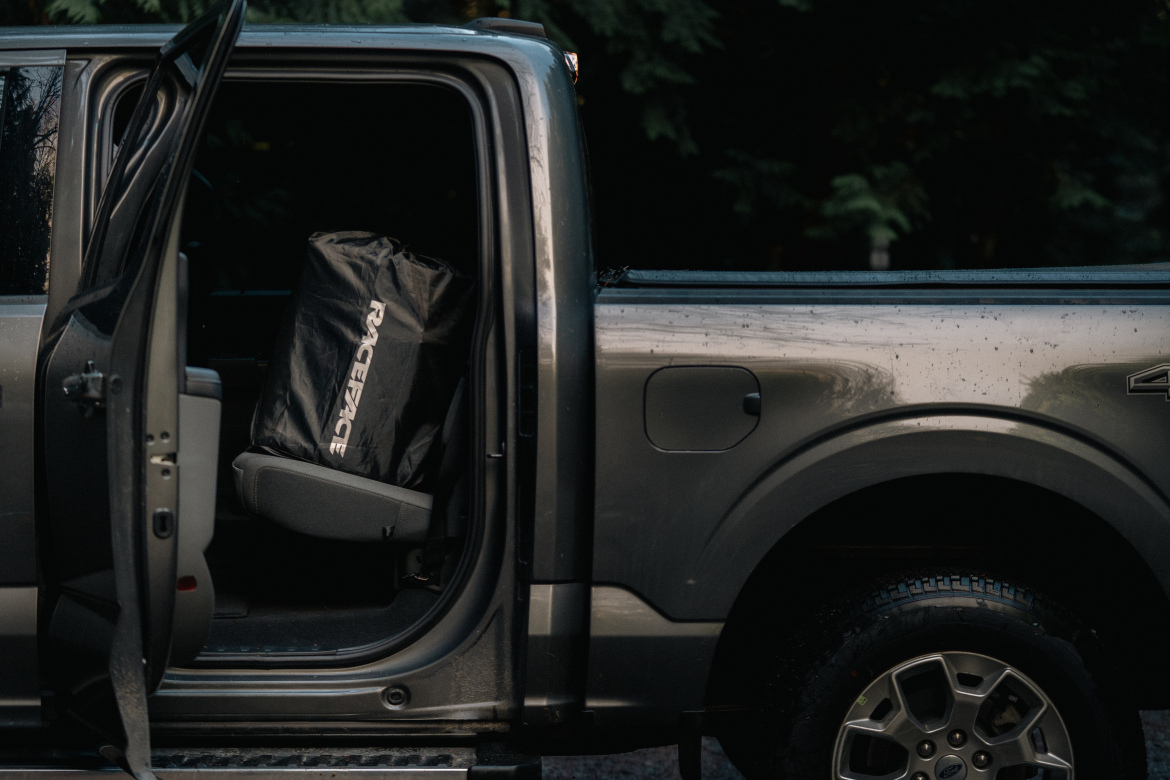 New Race Face tailgate pad rolls up like a sleeping bag for easy storage