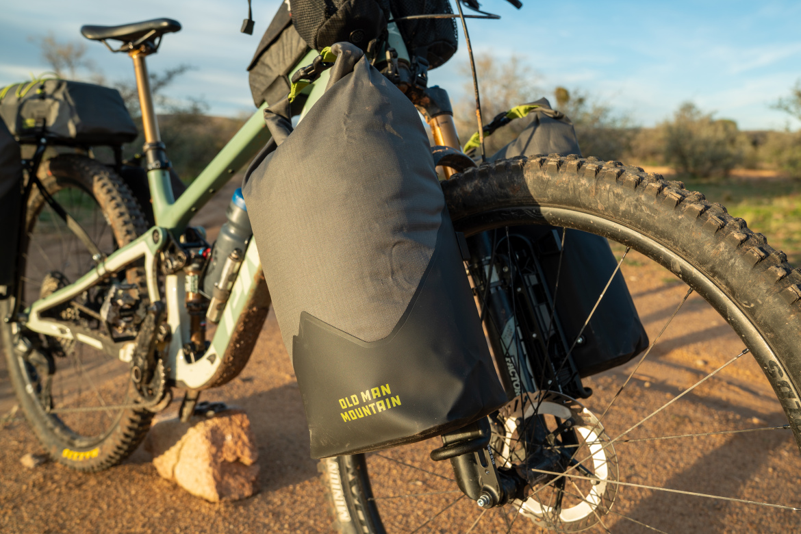 I reached out to Old Man Mountain (OMM) for advice on how to best create a bikepacking system that would work on my size medium Pivot Trailcat SL. They recommended that I try this setup.