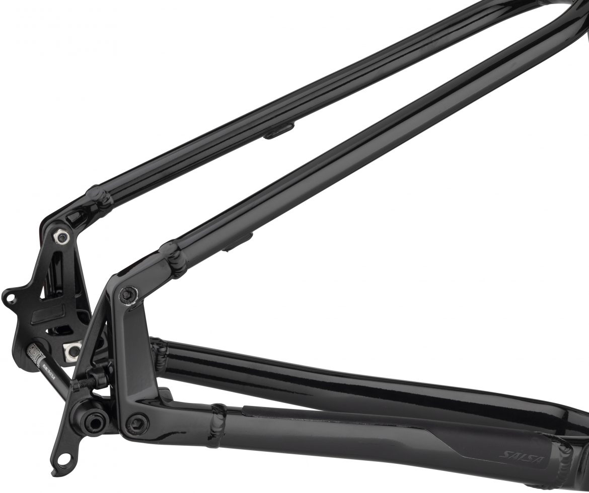 Salsa has some updates to celebrate for their beloved Timberjack mountain bike. The new hardtail frame will squish the 120-150mm fork of your choice, with space for 29×2.6″ or 27.5+ tire widths. There are rack mounts out back, and bikepacking gear mounts in all of the right places.