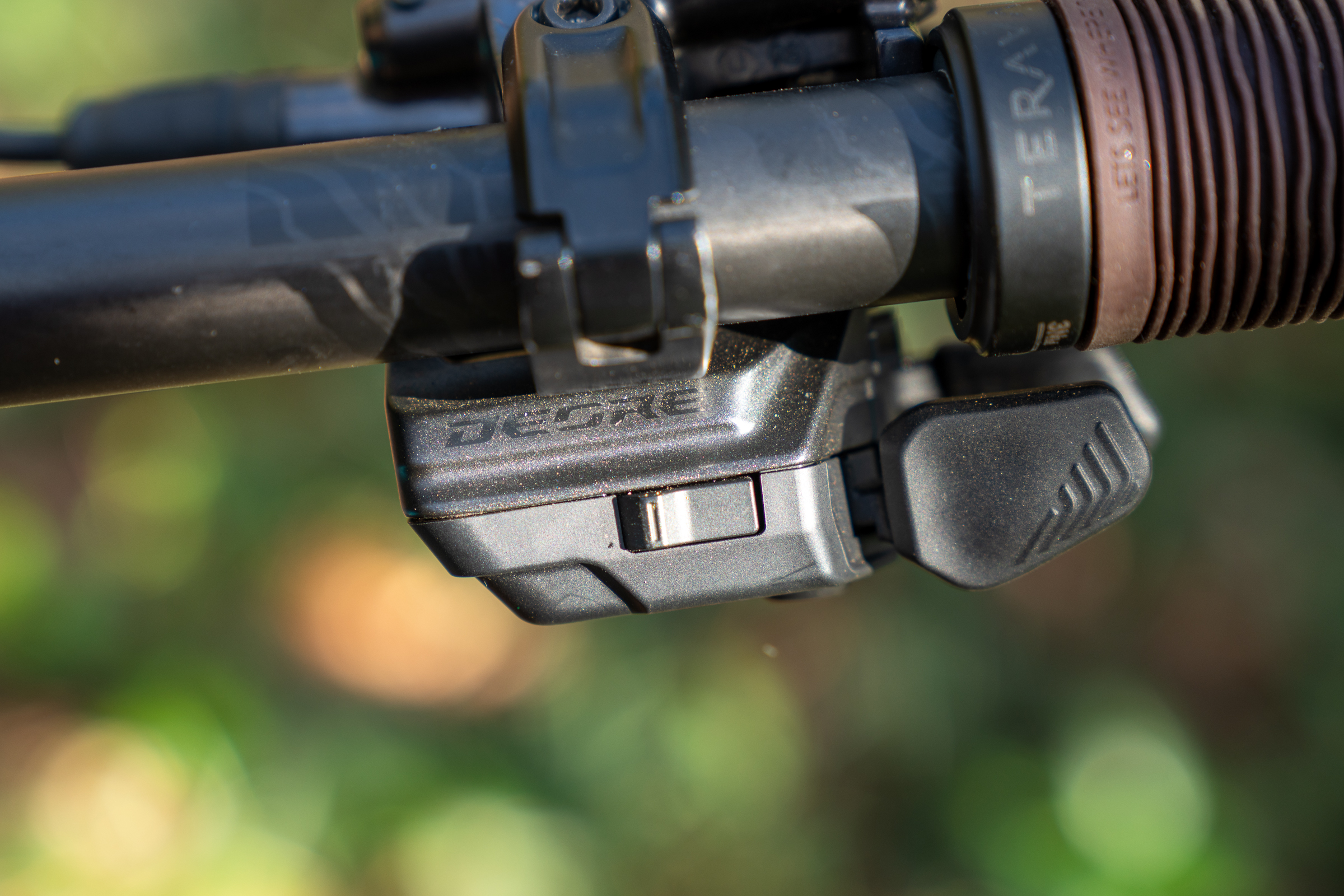 The Deore Di2 shifter (technically the “shifting switch,” per Shimano) doesn’t offer adjustable lever positions like the more expensive XTR and XT versions. Of course, you can adjust the position of the unit inboard and outboard, and also the angle of the shifter, but the individual trigger positions are fixed. This isn’t unlike previous mechanical systems, so most riders probably won’t miss this feature. Coming from XTR Di2, I found the fixed positions a little awkward at first, but adapted to them over time. My takeaway is that the adjustable levers are a nice-to-have feature, but they’re not make-or-break.
