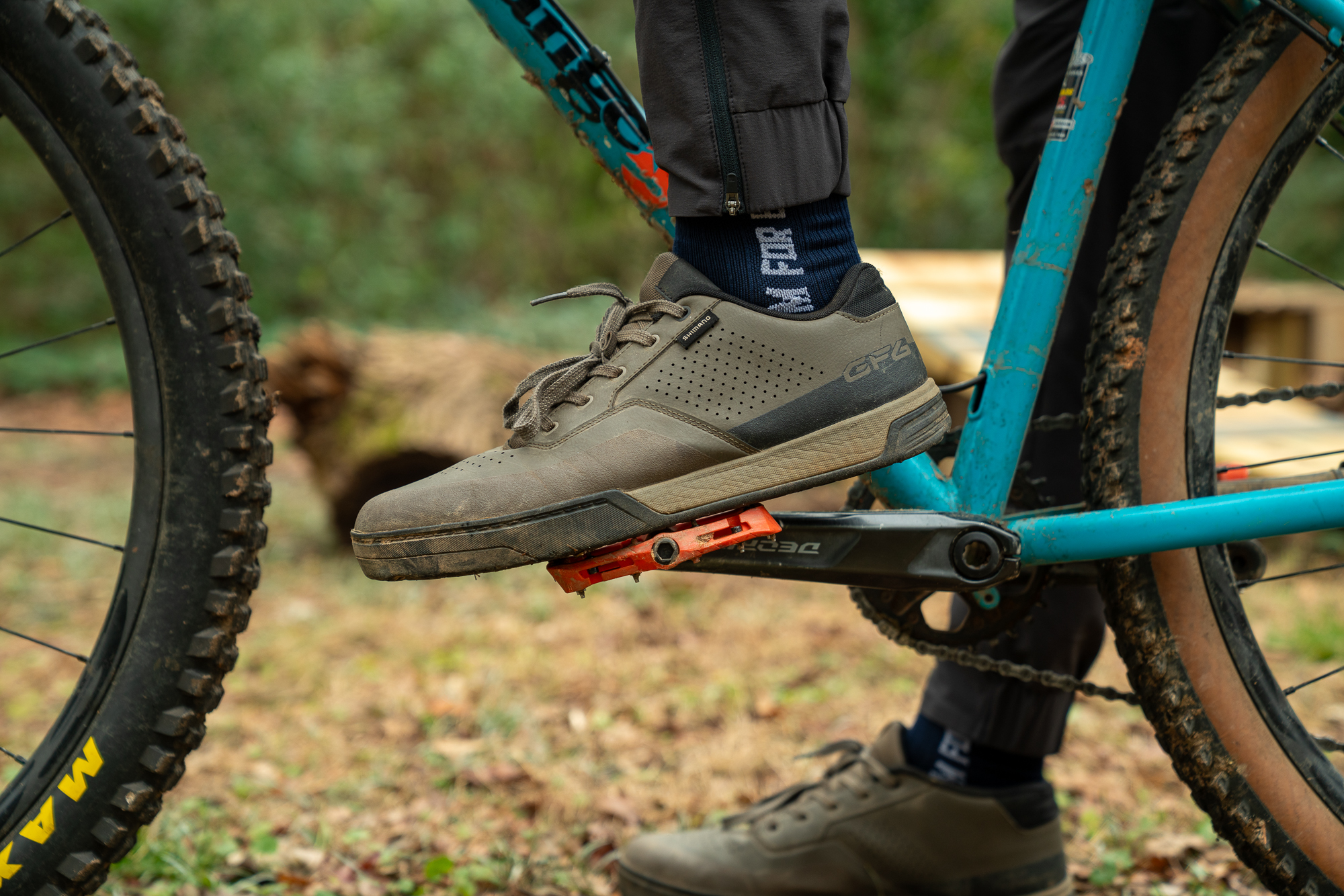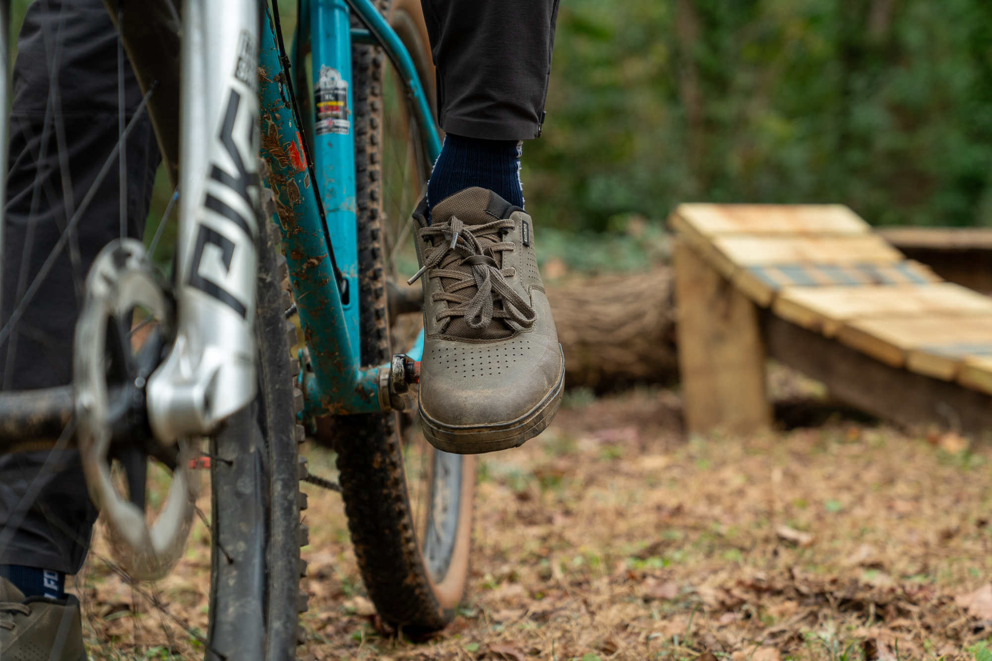 With the generous toe box, the GF600s seem to fit true to size. They’re available in black and brown (tested), though to my eye the brown borders on almost an olive-green color. In fact, the color isn’t too far off from a couple of other flat pedal shoes I own, the Fox Unions and Northwave Tailwhips.