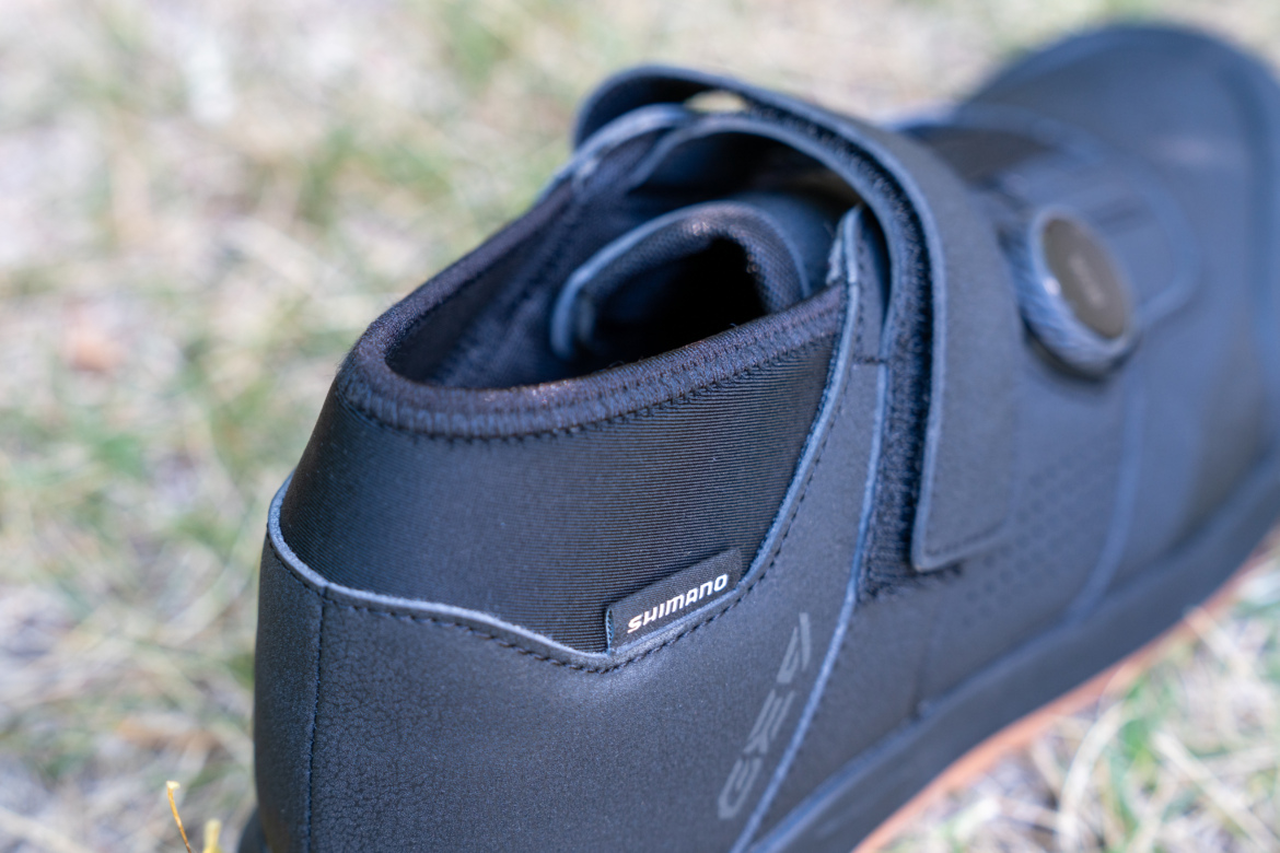 Secondly, the neoprene cuff around the ankle is a welcome feature that’s not seen on many MTB shoes. With most shoes, dirt and small rocks inevitably find their way down and into the shoe, especially during long hike-a-bikes in loose terrain. In trail running and backpacking, lightweight gaiters are becoming increasingly popular to solve this problem. Shimano’s integrated cuff solves the grit-in-the-shoe problem without the complexity of a separate gaiter.