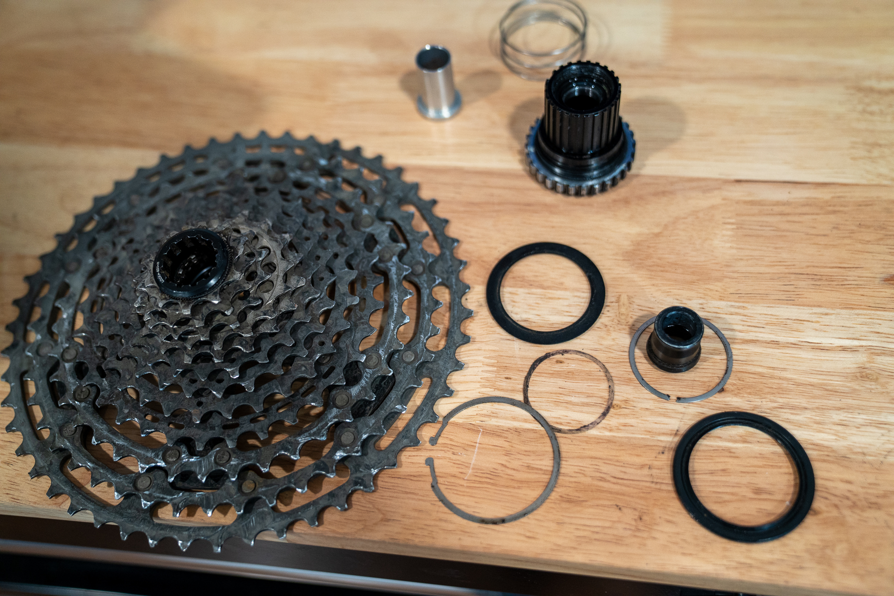 Shimano says they improved the hub seals and bearings this go around, and I can confirm there are seals on top of seals to keep dust and dirt at bay. While you can simply pull the freehub body off some wheels, the Shimano XTR freehub body is held in place by a series of clips and seals.