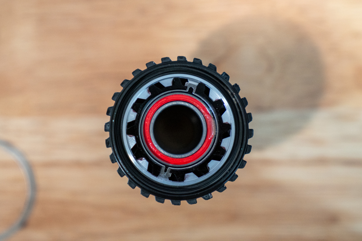 With the freehub off, I found zero sign of contamination inside. Clearly, the seals have been effective over a year of riding in variable conditions.