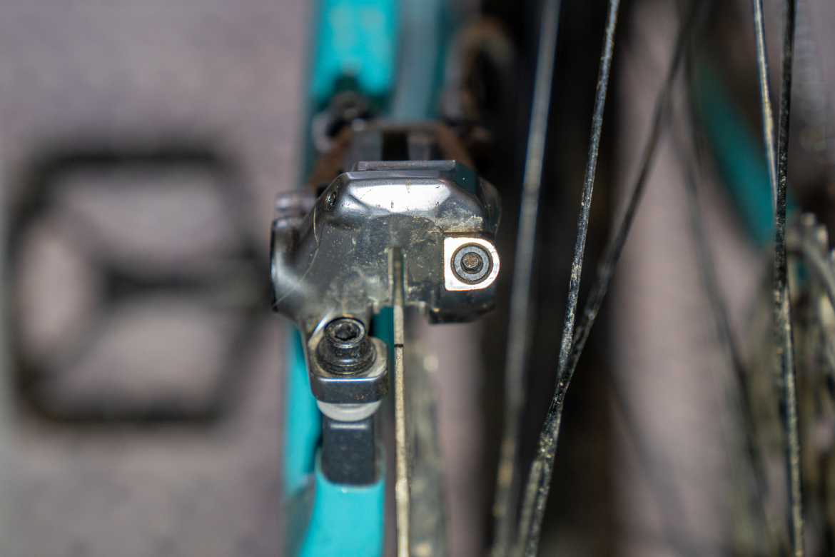 The derailleur shows some scrapes and bruises, but it’s still as straight as an arrow, just like the Universal Derailleur Hanger it’s attached to.