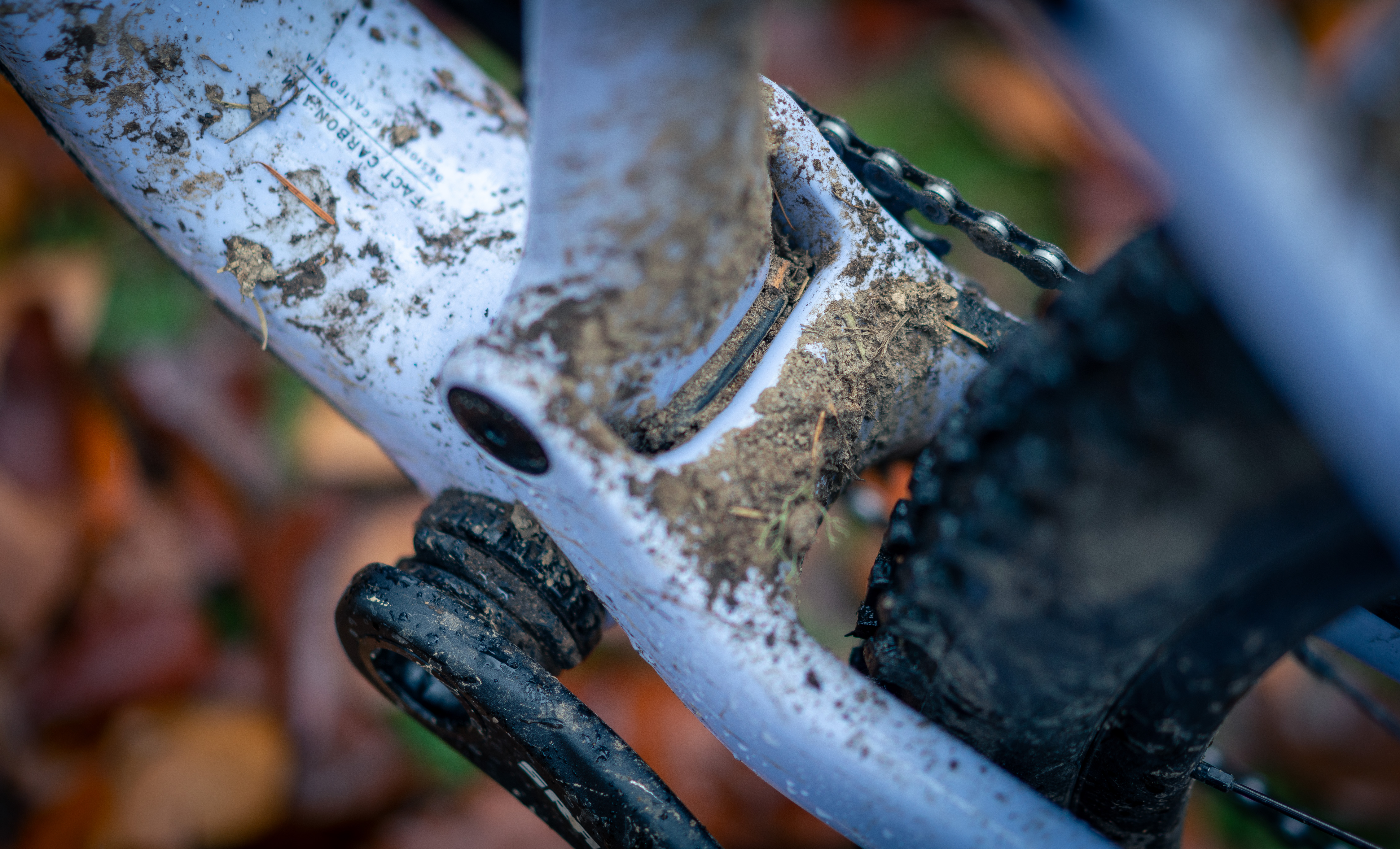 Main pivot protection is important where I live, and Speciaized has clearly heard from the mud-ride constituency. The Epic 8 has a chink of rubber between the front and rear triangle at the main pivot that does well to keep larger debris out of the nutcracker. I have heard a few distinct crunches as small rocks and detritus pass through the gap, but I have yet to find any cracks or missing paint. This is a common failure point on carbon full suspension frames, and it seems this little purple bike is slop-ready.