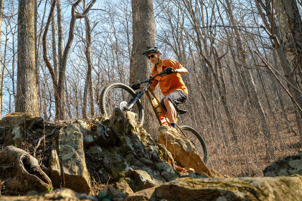 The upshot of a tall handlebar height is improved confidence on steep descents. With my center of gravity shifted rearward and over the bottom bracket, rather than leaning heavily on the front wheel, the Sorceress carves technical trails confidently. More weight on top of and behind the front axle means going endo feels far less likely.