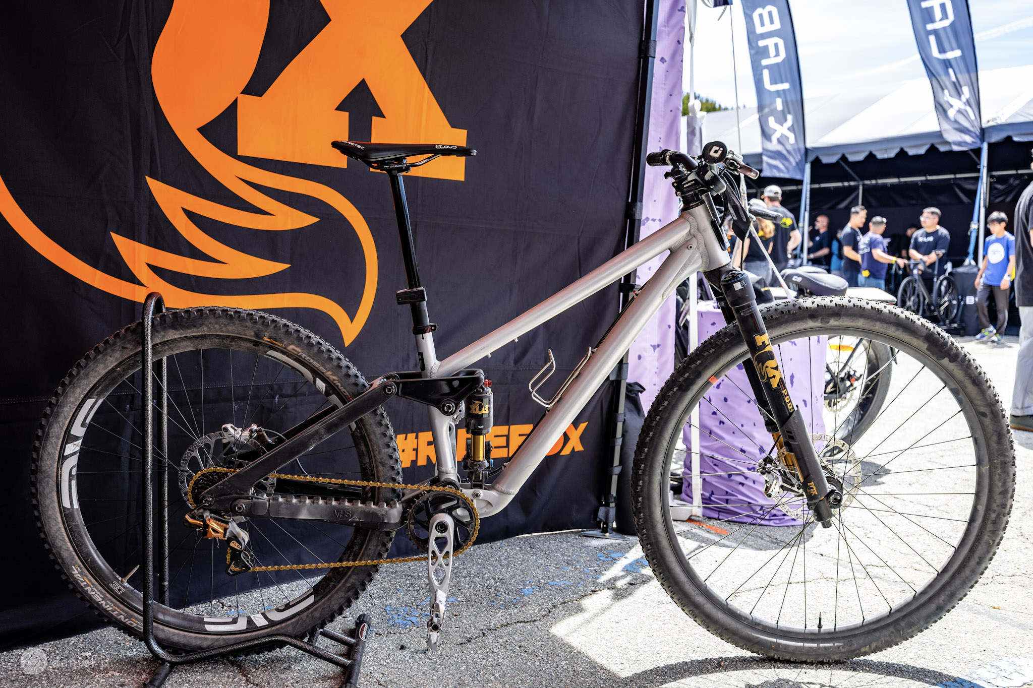 Like a lot of brands, Ari is tinkering with 32-inch wheels. This prototype features CNC aluminum construction and flex stays to keep the rear end simple and lightweight. Ari says they’ve been able to shrink the bike down to a size small in order to fit a wide range of riders.