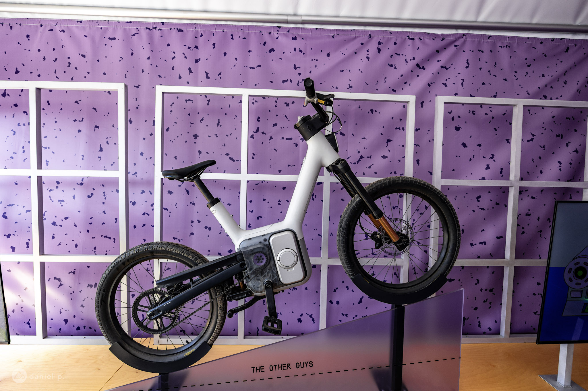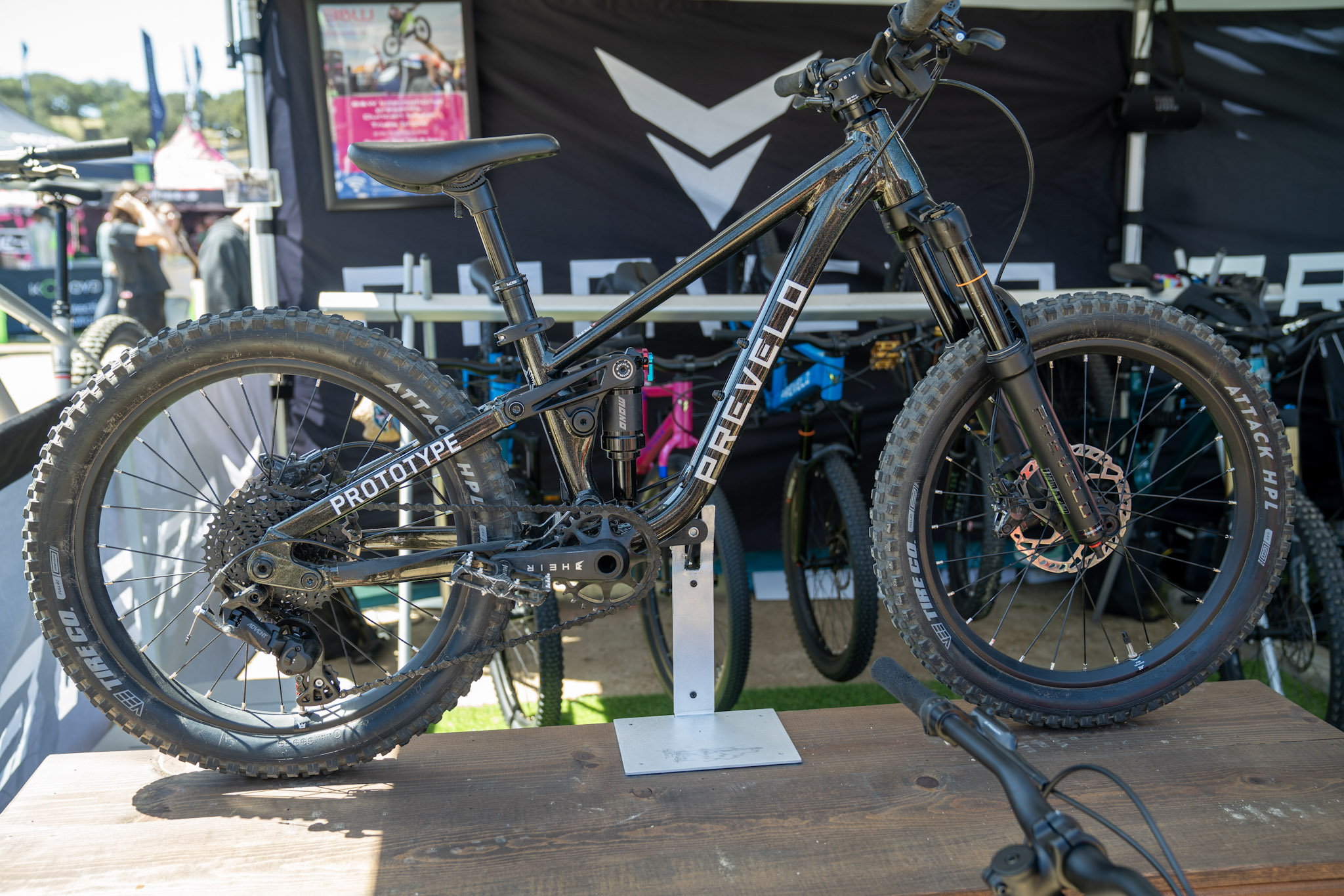 Without a reference point for scale in this photo, it’s hard to tell that this Prevelo full-suspension prototype is a kid’s bike. Everything is scaled to size, from the cranks to the cockpit to the suspension. The 20×2.4″ tires on the display bike had clearly been ridden, so it seems this prototype is already getting some heavy use!