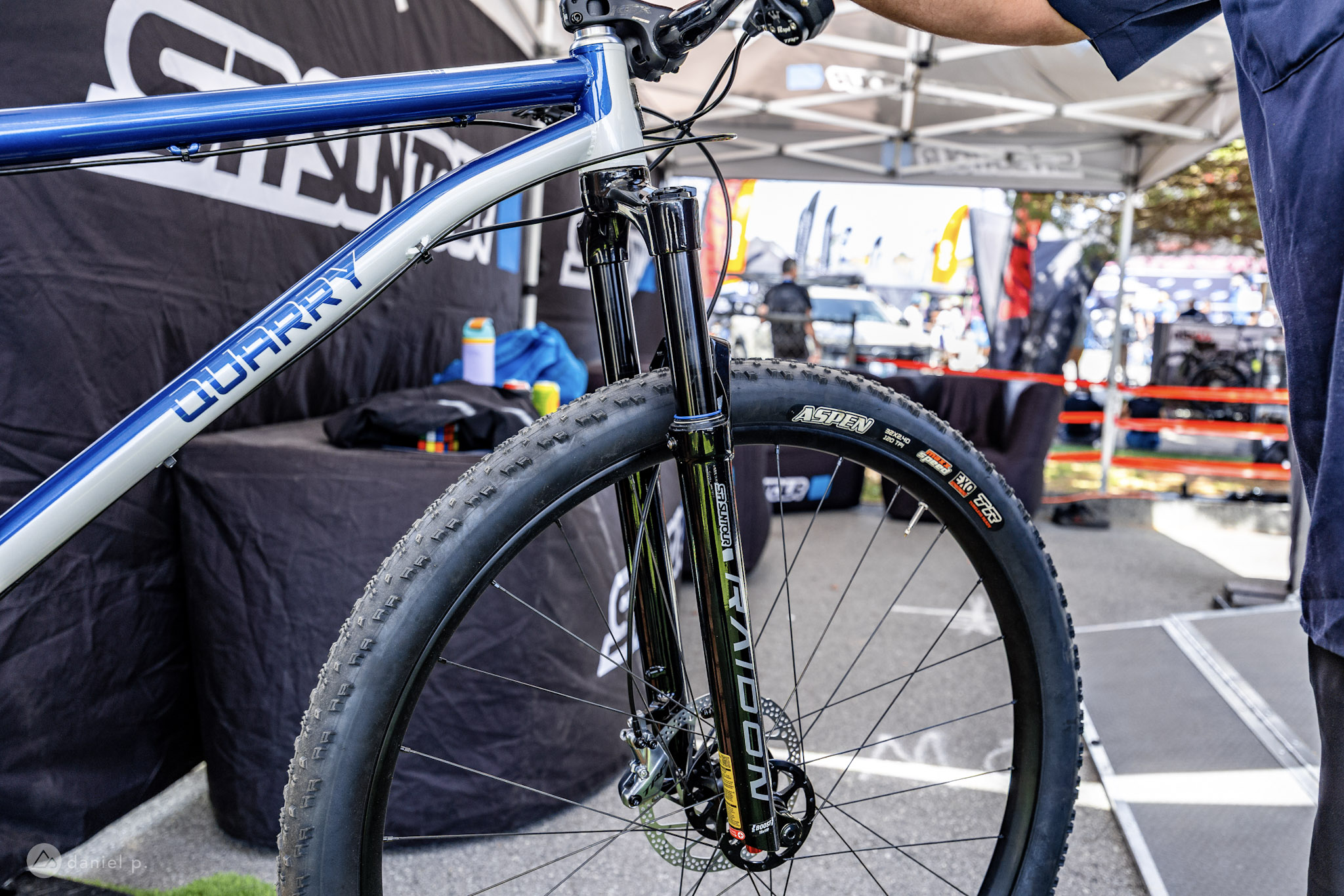 Quarry already has a 32er — the Rage Bait 32 — in their lineup, so we were surprised to see another 32er from the Wisconsin-based frame builder. Unlike the Rage Bait 32, there’s no extra bracing at the junction between the head tube, down tube, and top tube. However, the Alder does feature Quarry’s signature seat stay yoke.