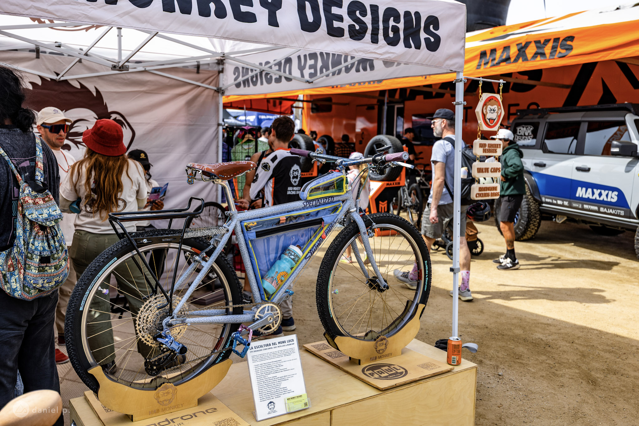 Mad Monkey Designs, a Southern California custom frame bag company, showcased a special collaboration project with various bike brands to revive a 1991 Specialized Stumpjumper. Here are the collaborators/components that were used.