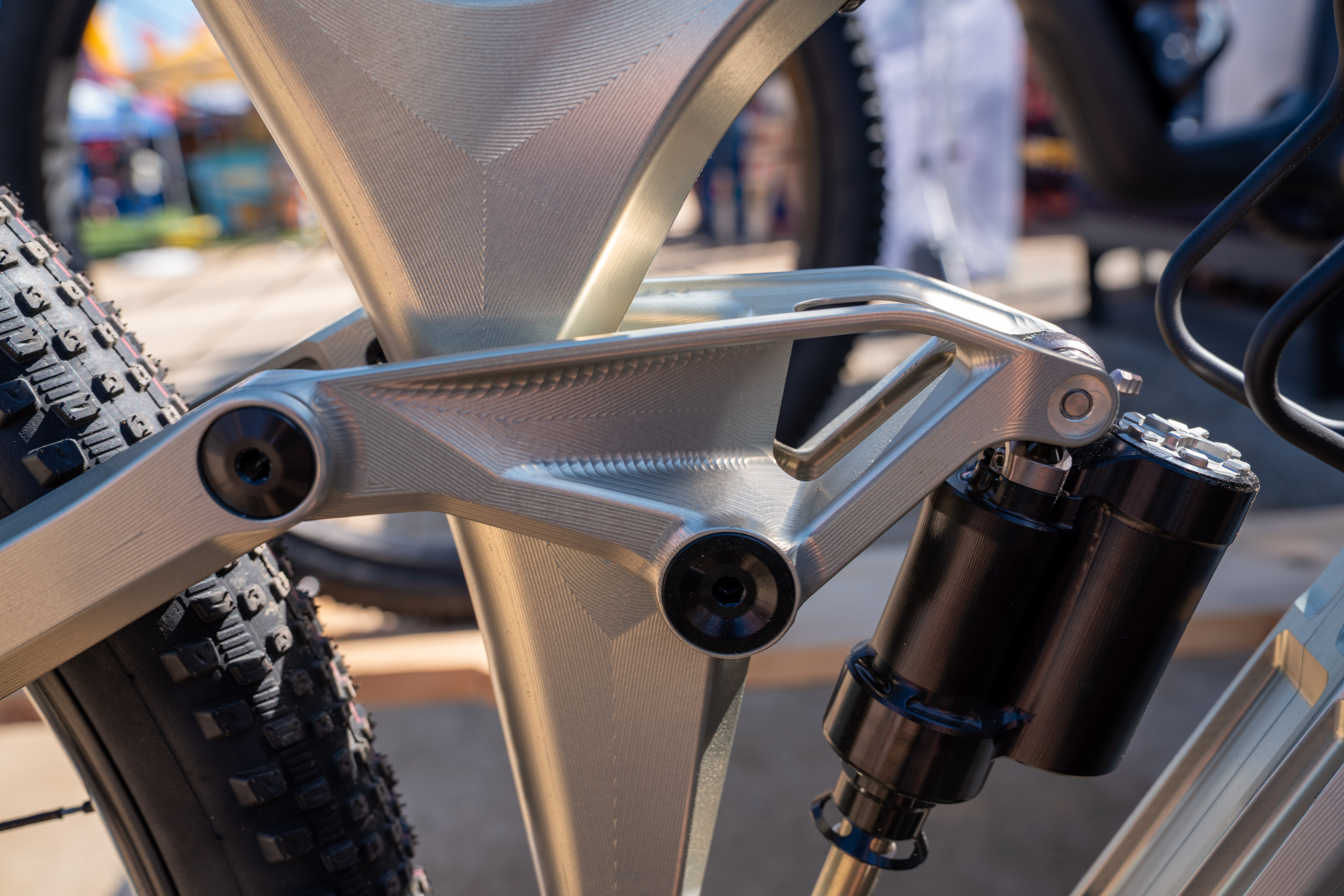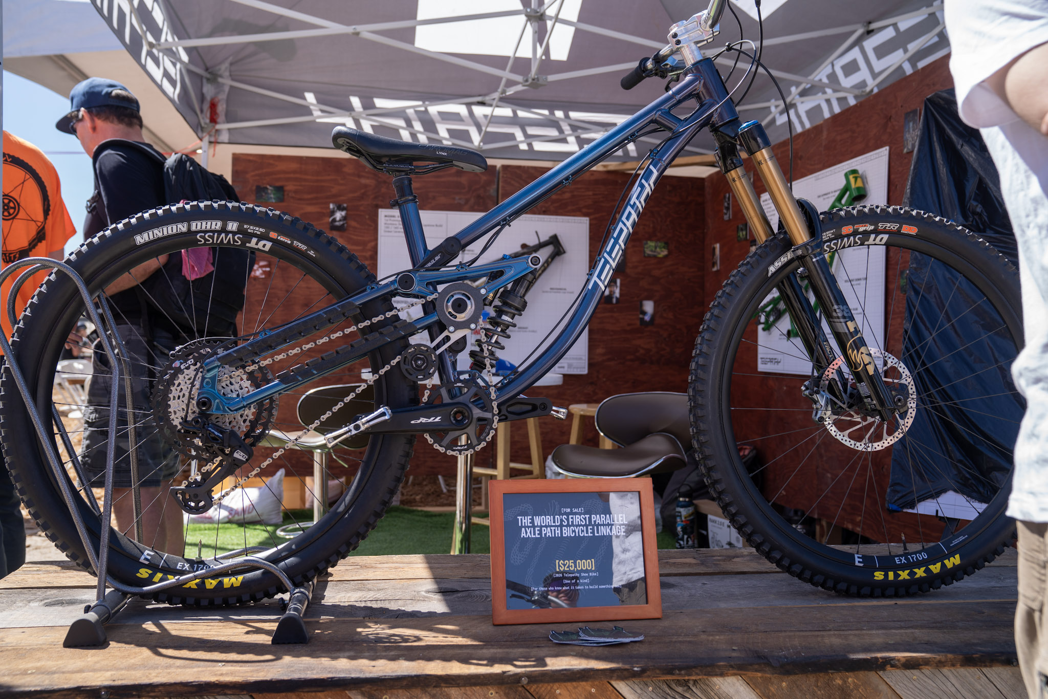 The Telepathy Opus features a unique suspension design they’re calling Sync Link or Parallel Axle Path. The idler and linkage combo is meant to eliminate chain growth for a “chainless” feel on the trail. This special edition bike with serial number 007 was on sale for $25,000, which certainly had people talking. For an upstart bike brand, that kind of money could certainly go a long way toward development and production!