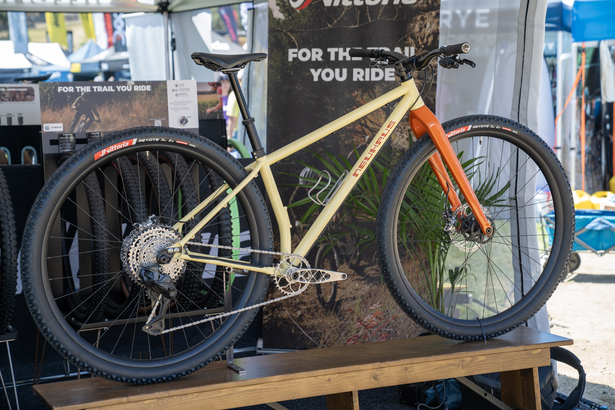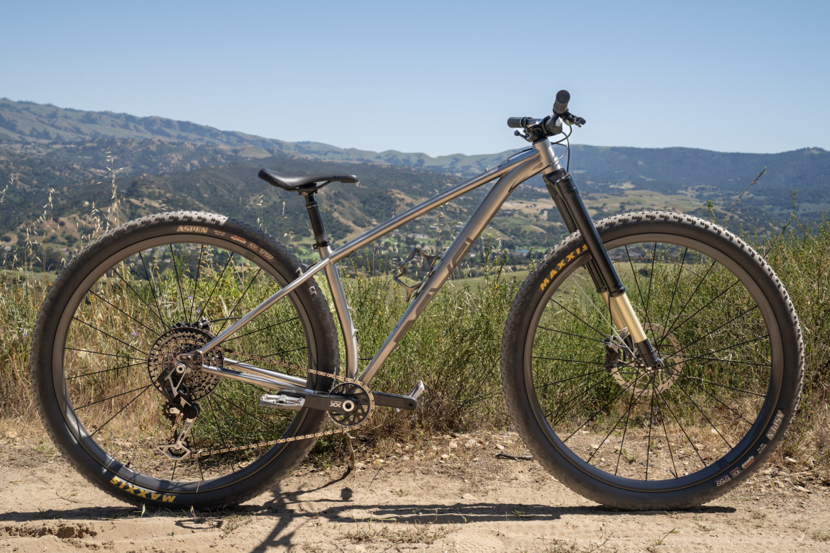 The Neuhaus Nova32 is a beautiful steel 32er mountain bike with an adjustable wheelbase. The Nova32 is designed around a rigid front end and features raised bottle mounts on the seat tube to maximize dropper post insertion. Frames are priced at $1,799, while a rolling chassis (fork, wheels, and tires) is $2,599.