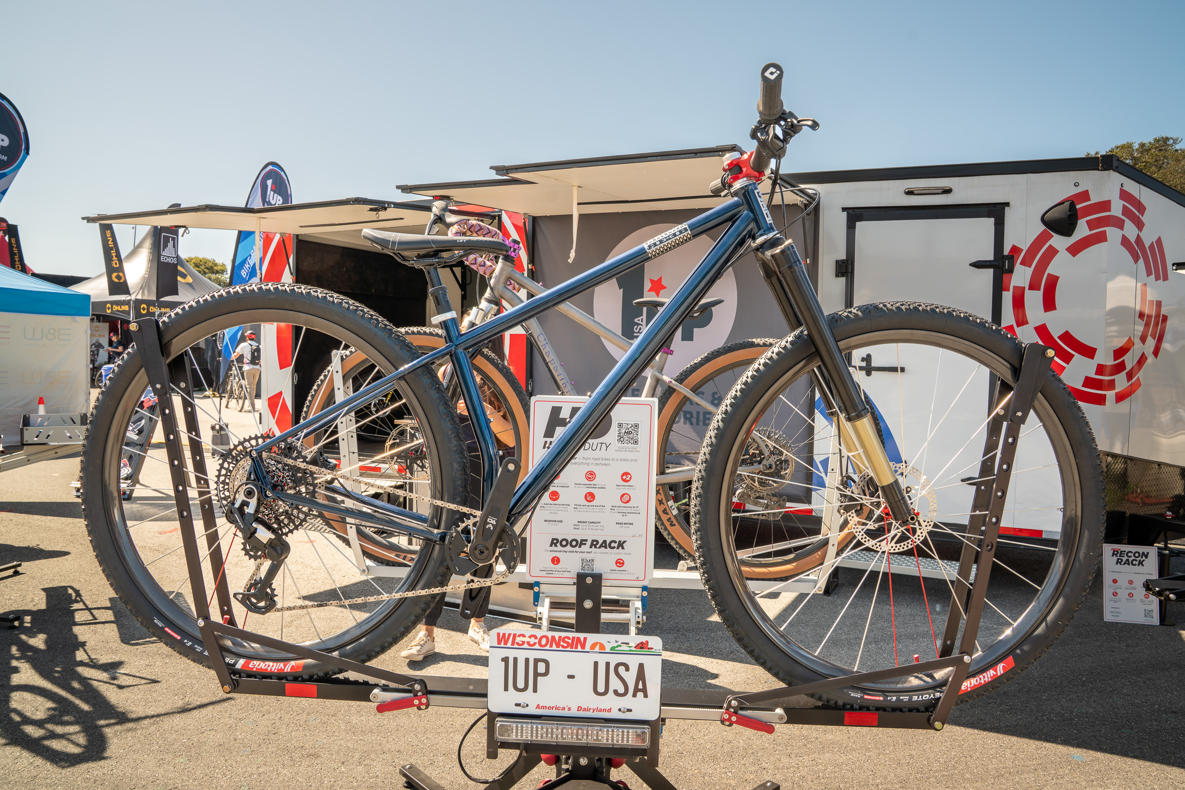 Forget XC racing, REEB is bringing its renowned hardcore hardtail vibes to the 32″ space with this new prototype that we spotted at the 1UP booth. We have very few details on this bike, other than it was displayed with an inverted fork that appears to boast ample suspension and an obviously slack head tube angle. The slammed dropper post has plenty of clearance over the rear wheel, and the cockpit sports a stem so short it would be at home on a freeride bike — forget the negative rise stems specced on most other 32ers. With a long front center, this hardtail looks like it’s ready to party!
