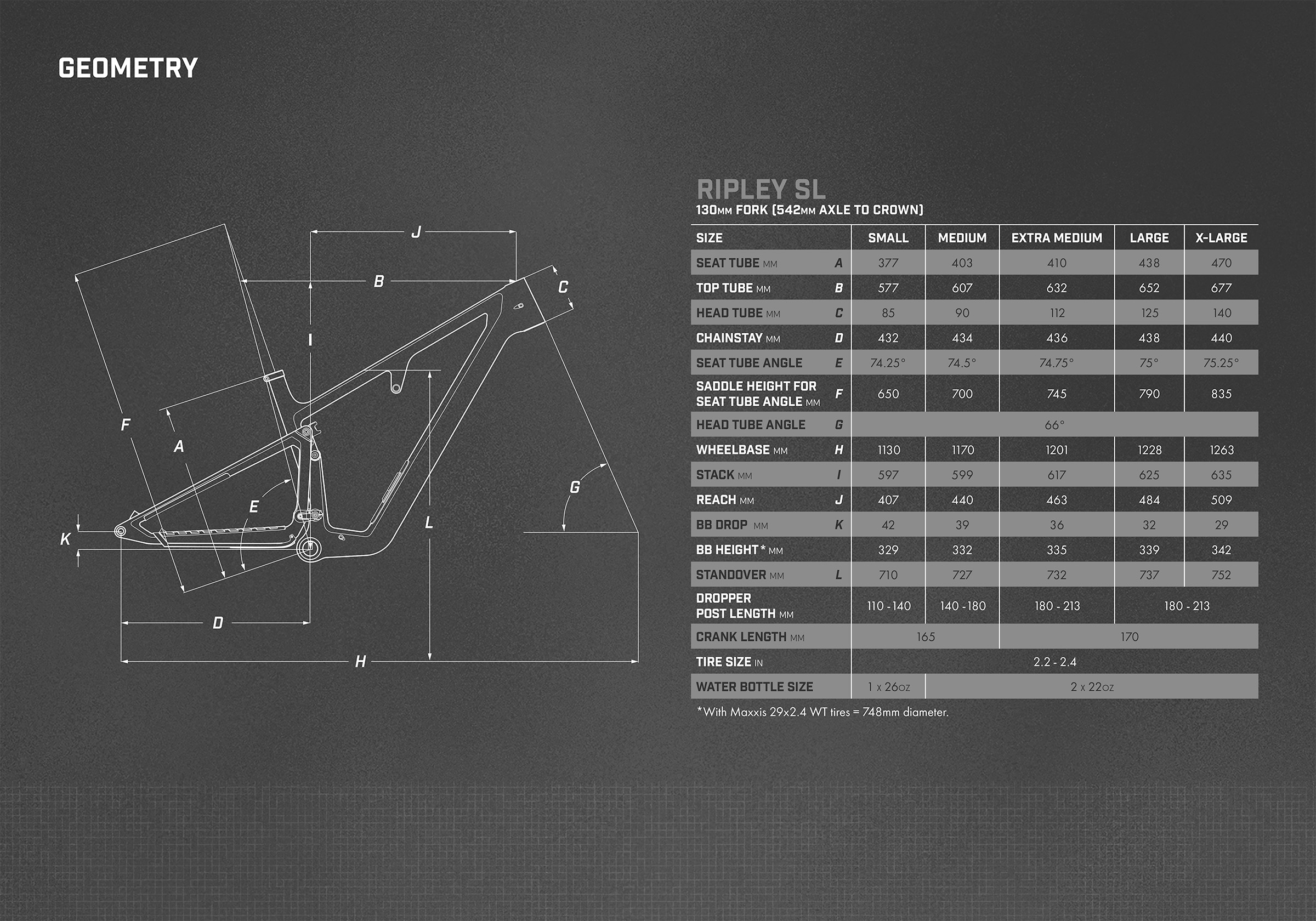 The upshot is a modern-looking bike with room for two water bottles inside the front triangle (size medium frames and larger). Like the Ripley, the Ripley SL gets internal frame storage in the downtube. However, unlike the Ripley, the Ripley SL does not have a flip chip for running mixed wheels.