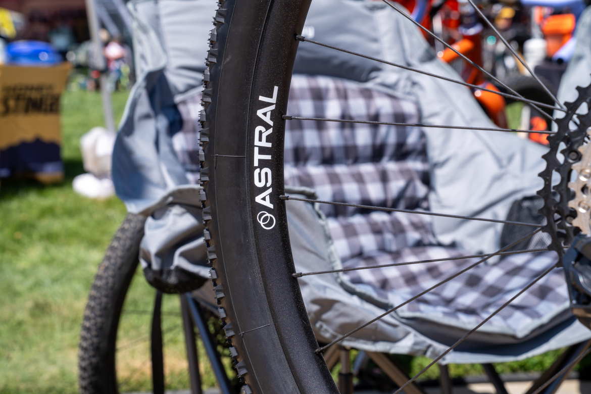 The Astral Jester 32-inch wheelset appears to be a popular choice among builders, with Astral testing the new rim since at least late last year. Jester rims are made from 6069 aluminum alloy and feature a 30mm internal rim width and 32 spoke holes.