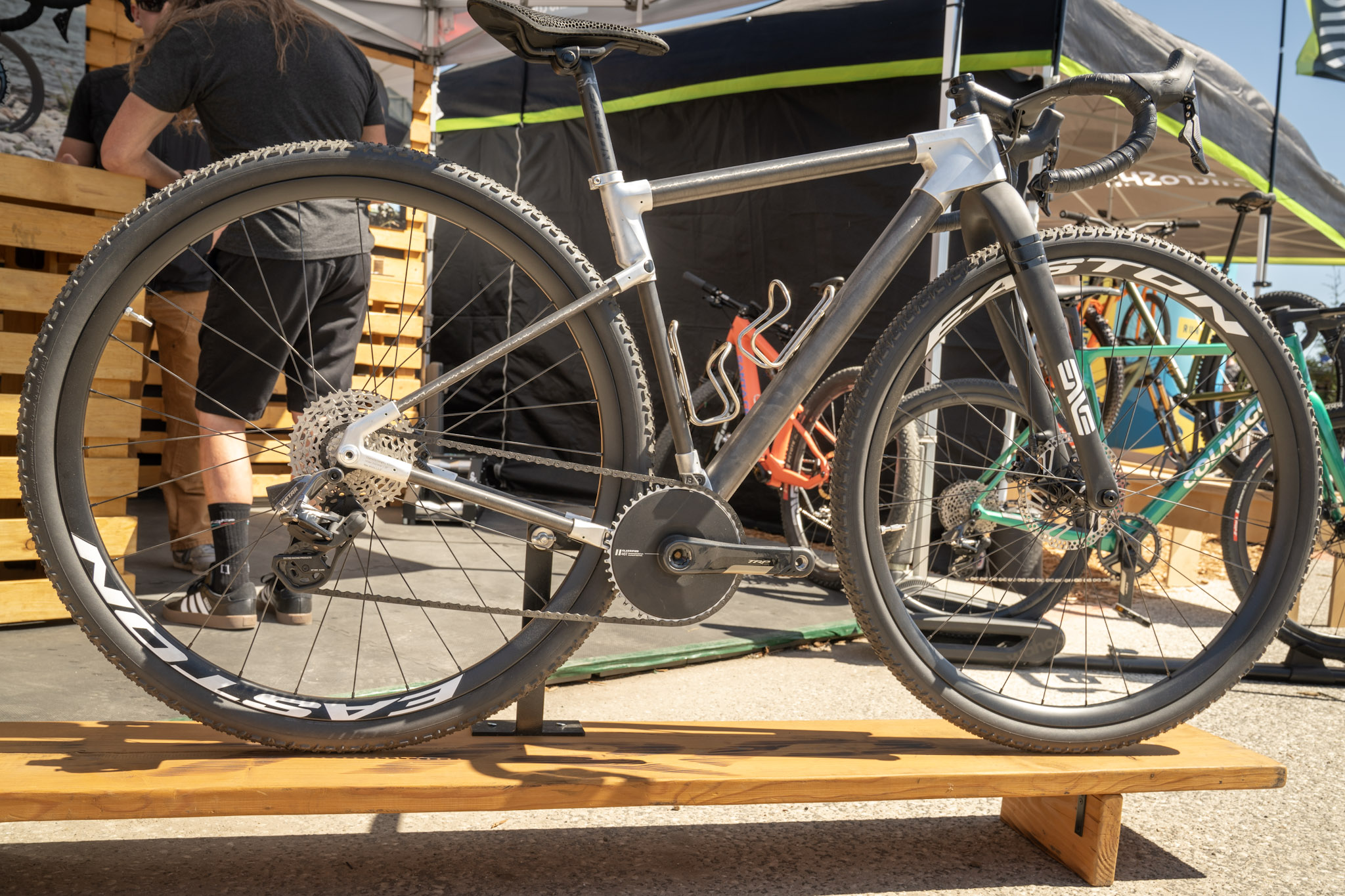 Race Face and parent company Fox are clearly working on components for 32er bikes, but at this stage they’re still fairly tight lipped. We spotted these Race Face mountain bike rims at Sea Otter plus Easton gravel rims too.