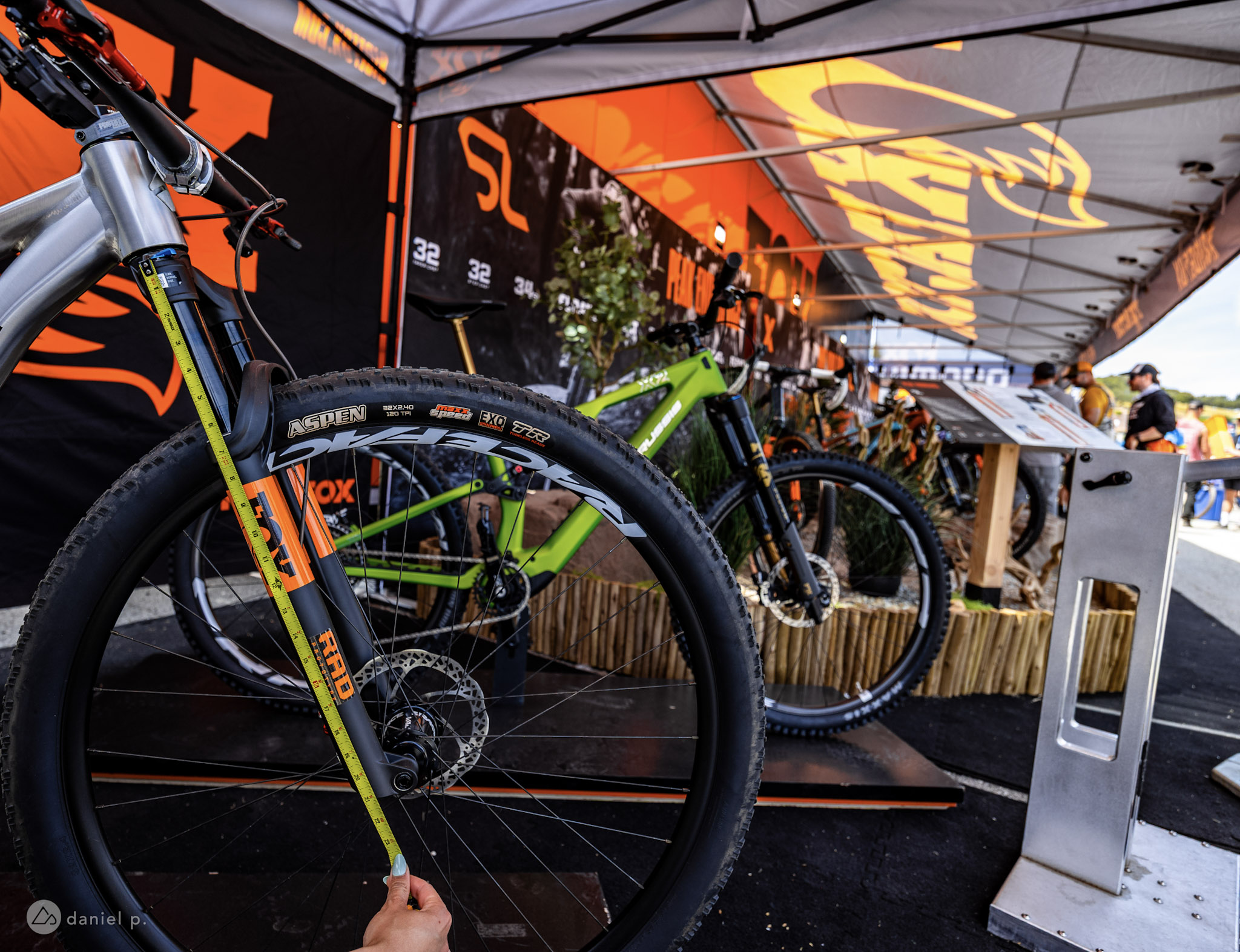 The Fox 34 fork on display at Sea Otter comes from the brand’s Racing Applications Development (RAD) program. Though Fox has yet to commit to producing a 32er fork, it appears they are deep into the development. Based on our measurements, the version under development likely provides 120mm of suspension travel.