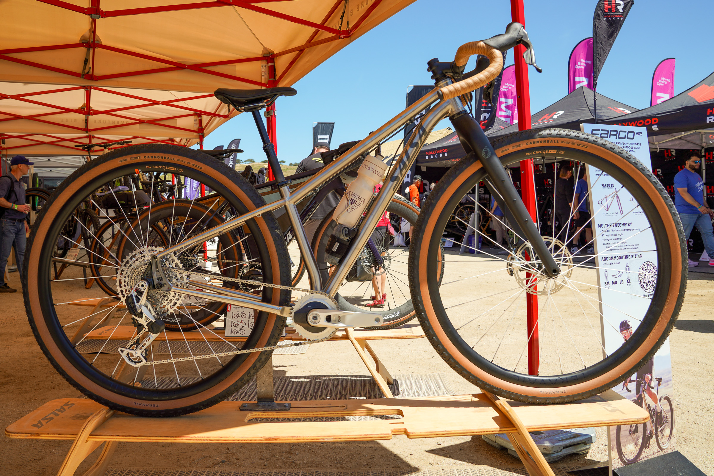 The carbon 32″ Teravail Circos wheels are specced on the new Salsa Fargo 32 gravel bike and feature a 29mm internal rim width. The Circos will be offered in 28- and 32-hole versions. Teravail also introduced a mountain bike tire this month, the Camrock, which suggests they could be working on a 32″ mountain bike rim next. Circos wheels will be available starting this summer.