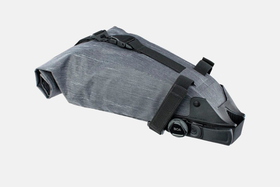 This waterproof seat bag comes in 3 sizes and all are on sale for 30-40% off. The EVOC BOA seat pack is designed to work with a dropper post, and the volume adjusts to fit just what’s inside.