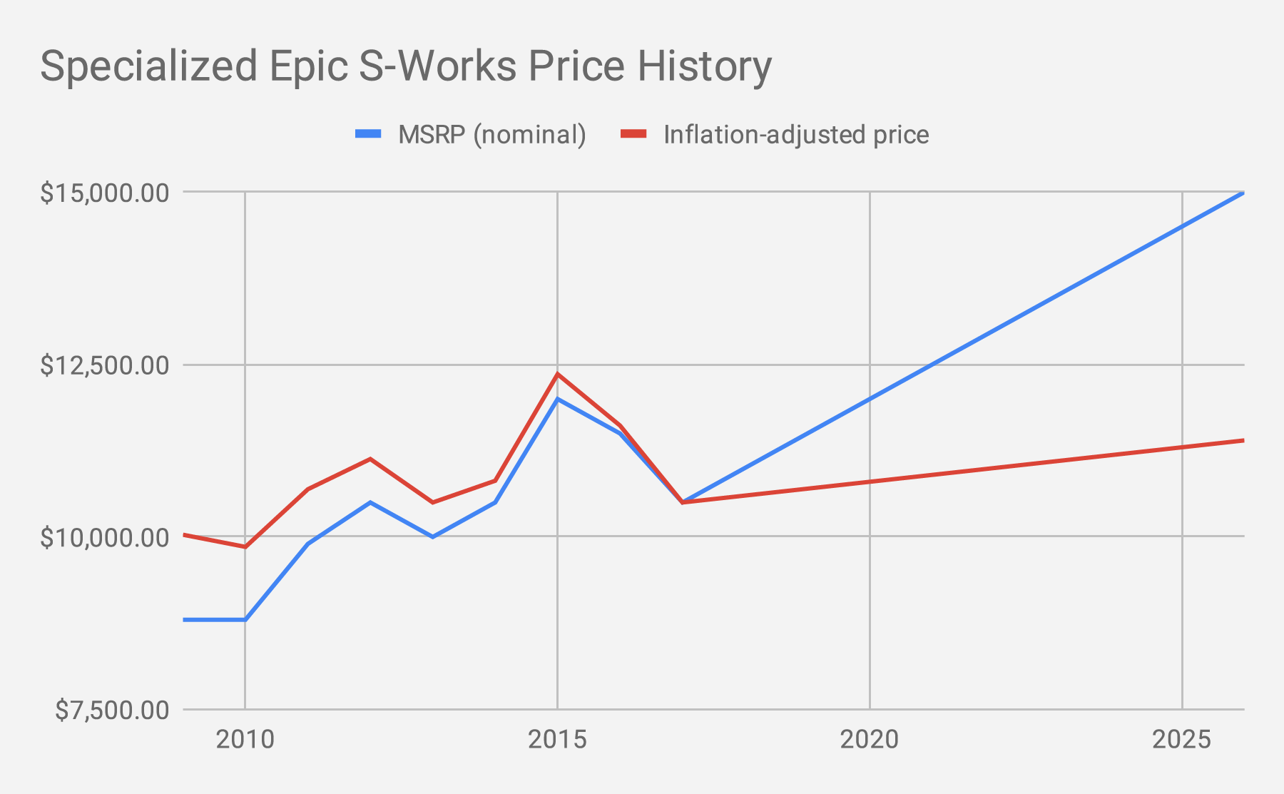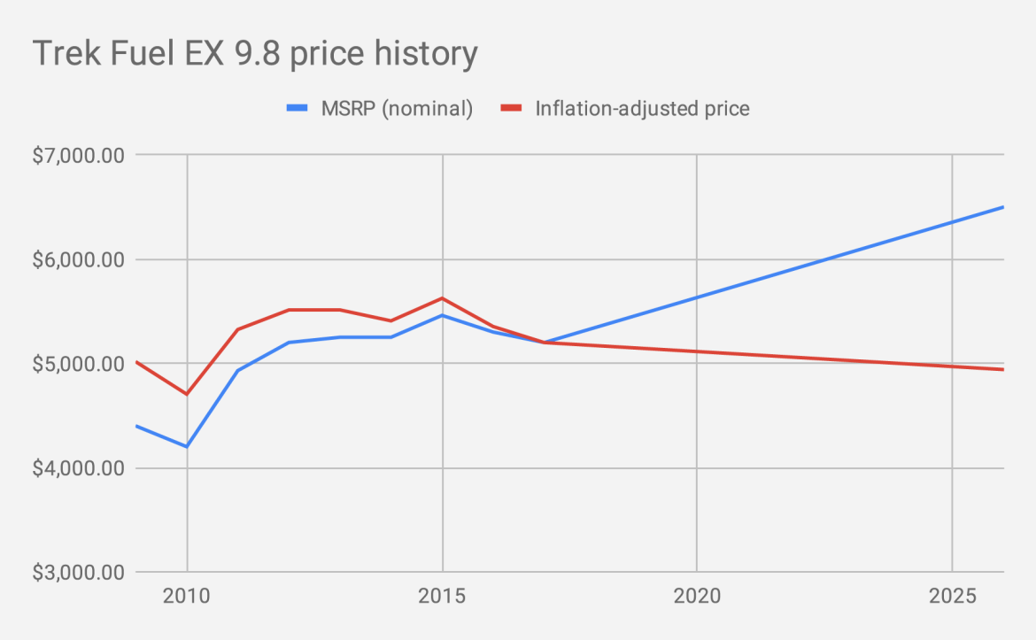 Note that the 2026 prices used in this analysis are suggested retail prices. Many of these bikes are currently on sale for less or were recently discounted, making them even cheaper than in 2017.