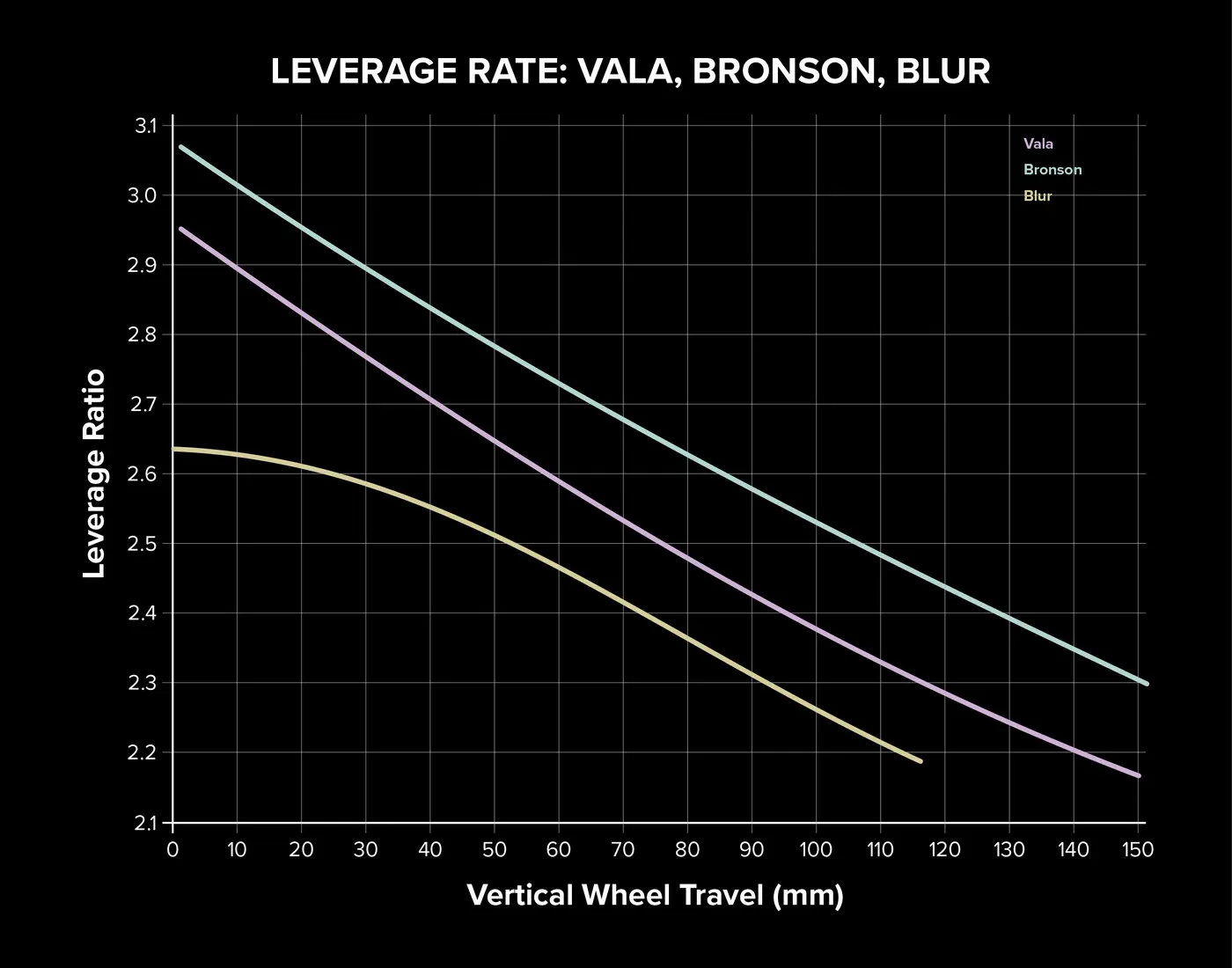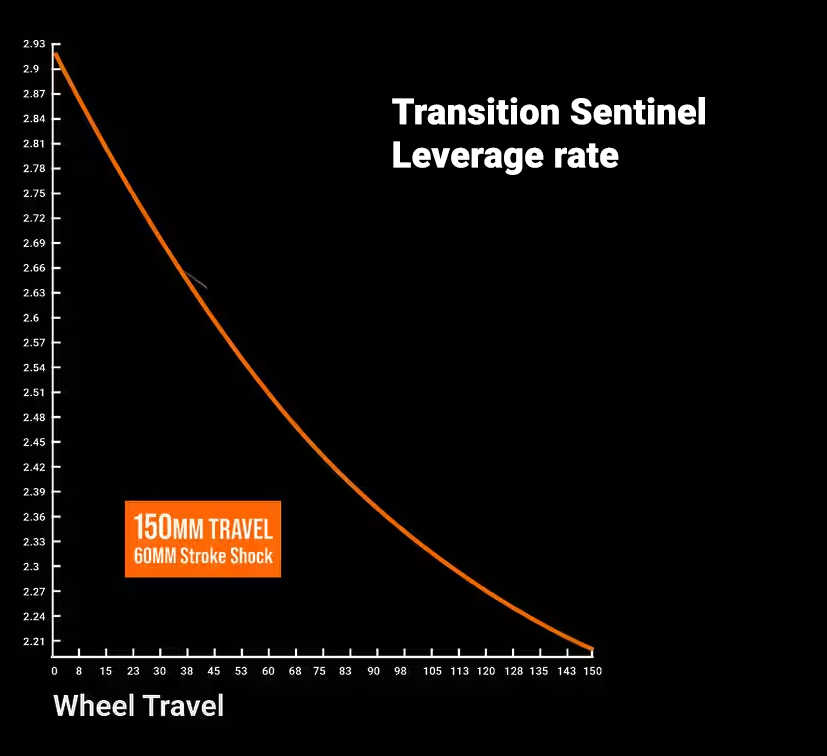Transition’s GiddyUp Horst link suspension design, on the other hand, has been around for about a decade now and the brand touts its ease of setup and wide tuning range. The Sentinel delivers a more progressive leverage curve, ranging about 25% with a 60mm stroke shock. Though Transition doesn’t provide an anti-squat chart for the Sentinel, the anti-squat is likely higher than the Bronson due to its Horst link design and stated focus on enhanced pedal efficiency.