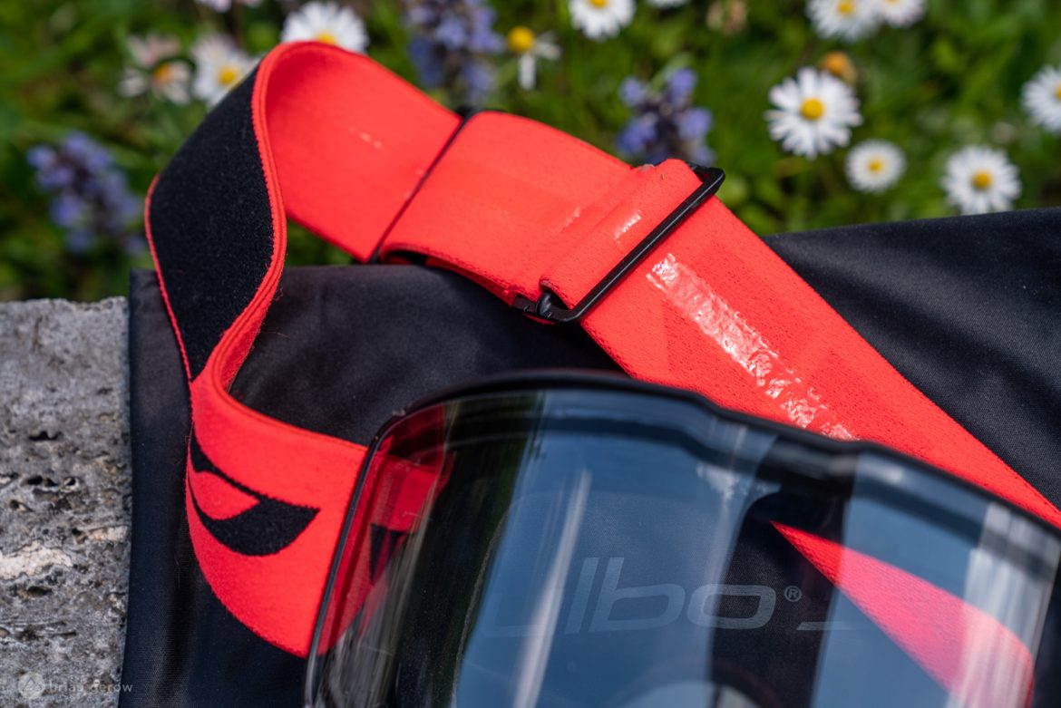 The long strap has plenty of material to wrap around my size XL helmet, or to cinch down on a far smaller lid, and it has the usual silicone strip to hold it in place. The strap attaches to the frame in a forward position, near the lens, allowing the frame to sink back into a full-face helmet comfortably.
