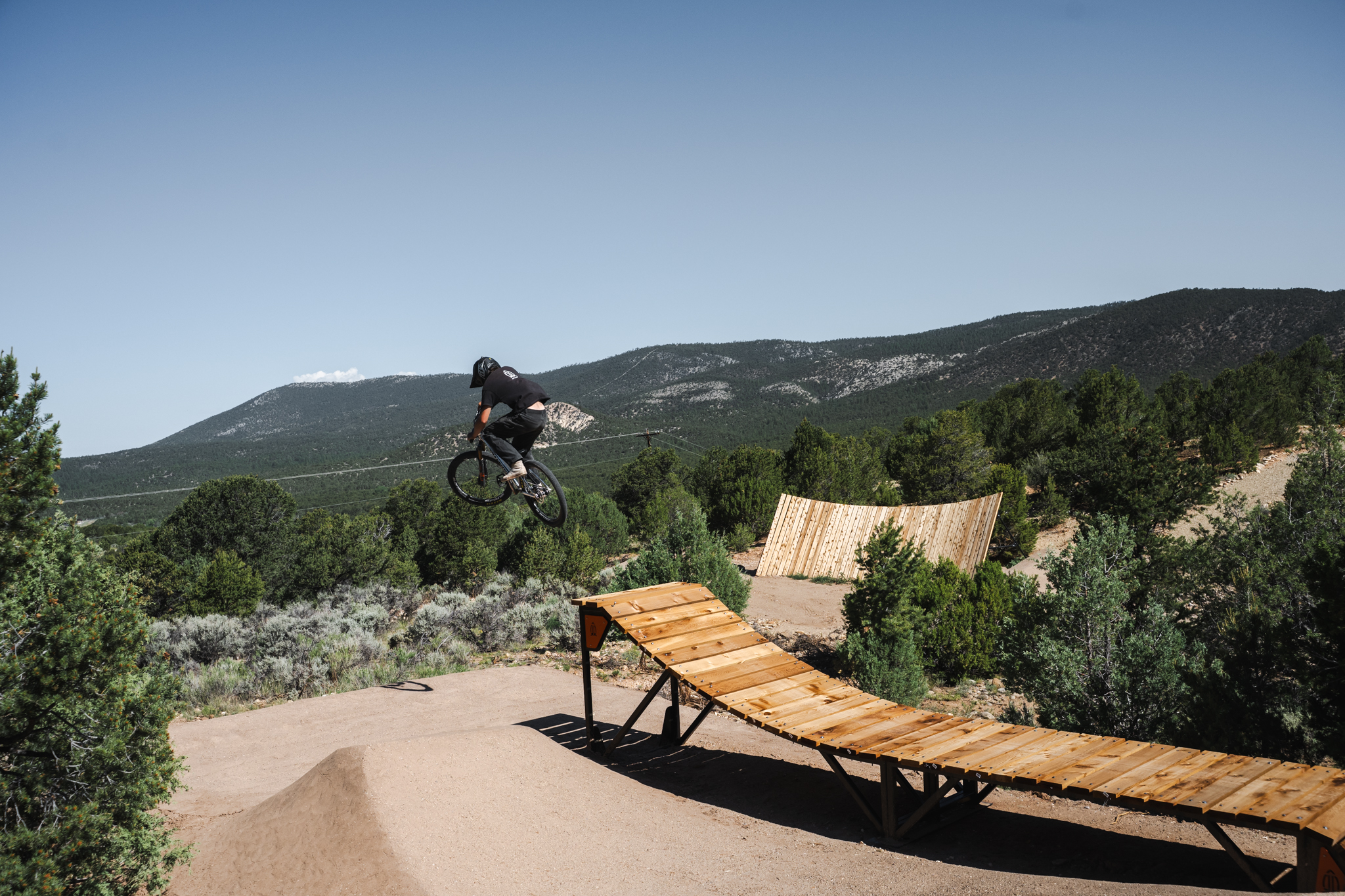 When Henry Lanman, Founder of Rocket Ramps, outlined the possible jump lines and features they could build for the Picuris Pueblo, he was initially taken aback by their request. “I was like, ‘Okay, let me be clear: this jump is 50 feet long and the lip is 15 feet tall. Is this what you want?’ And they’re like, ‘Absolutely. We want to jump the road. We want the craziest jumps ever.'” The vision was spearheaded by former Tribal Governor Craig Quanchello, who wanted to provide infrastructure for the Pueblo’s youth to pursue their passions. According to Lanman, there’s nothing like the Picuris Pueblo Bike Park within a 300-mile radius of this tiny town. The scale and quality are entirely new for New Mexico, and potentially the entire Southwest.