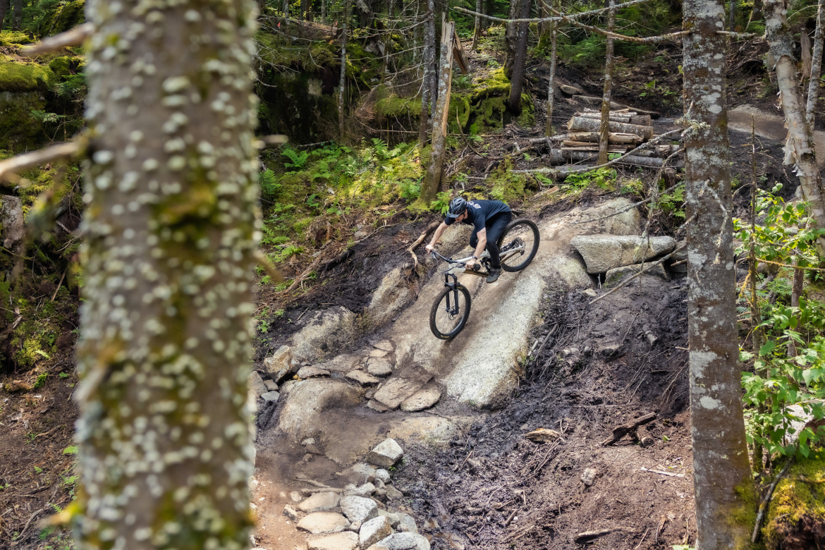 Sentiers du Moulin (SDM) is arguably the most popular trail system in Quebec, thanks to its top-tier trail construction and vast array of gnarly singletrack. In a trail system known for technical lines, the construction of the brand-new Saga trail stands out as a crowning achievement. SDM’s paid trail builders teamed up with a host of enthusiastic volunteer trail builders, ranging from experienced project leads to newbies, to construct a technical masterpiece that’s quickly gaining renown across eastern North America.