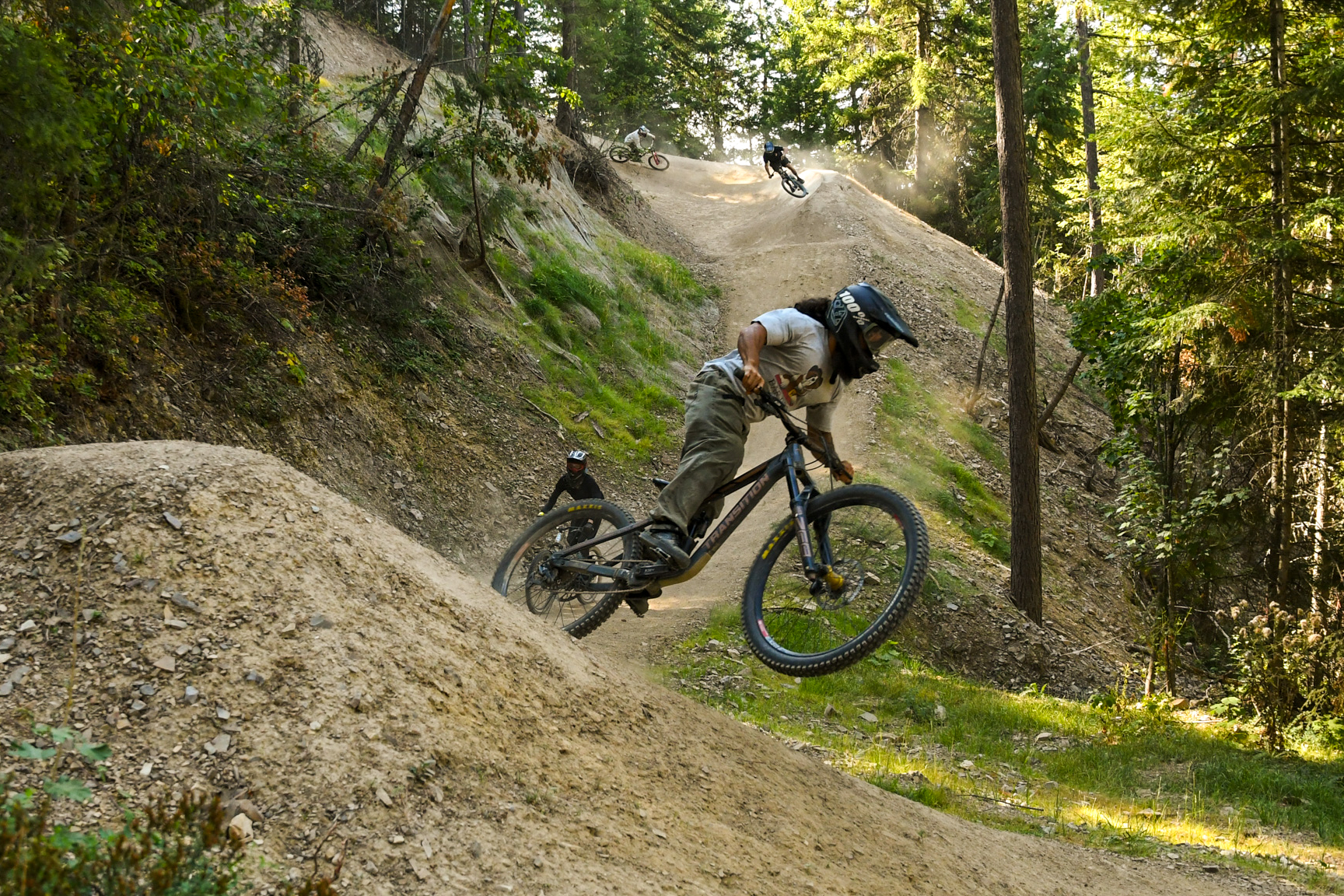 While everything on the trail is rollable, Gnomadic is a feature-rich freeride trail with “tabletops all the way top to bottom” and “some jumps that go 20-30 feet,” plus shark fins and a steep wooden roller that creates an over/under feature. While the trail just opened in late fall and only enjoyed a short riding season before snow shut it down for the year, local riders are already raving about Bozeman’s newest trail.