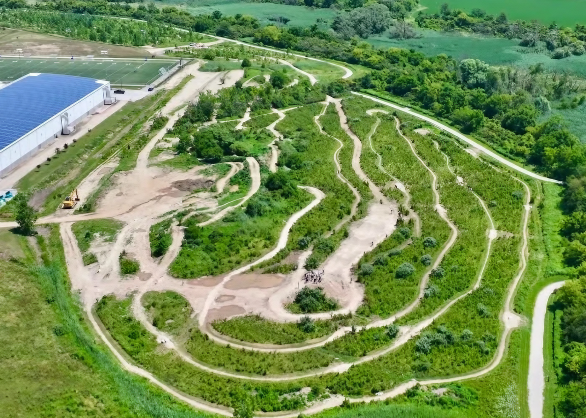 “Behind the community center, they have these rolling hills, which […] we kind of stumbled upon and said, ‘Wow, there’s actually a little bit of elevation here,'” Braakman told us. “We’ve got to find a way to build some trails here.”