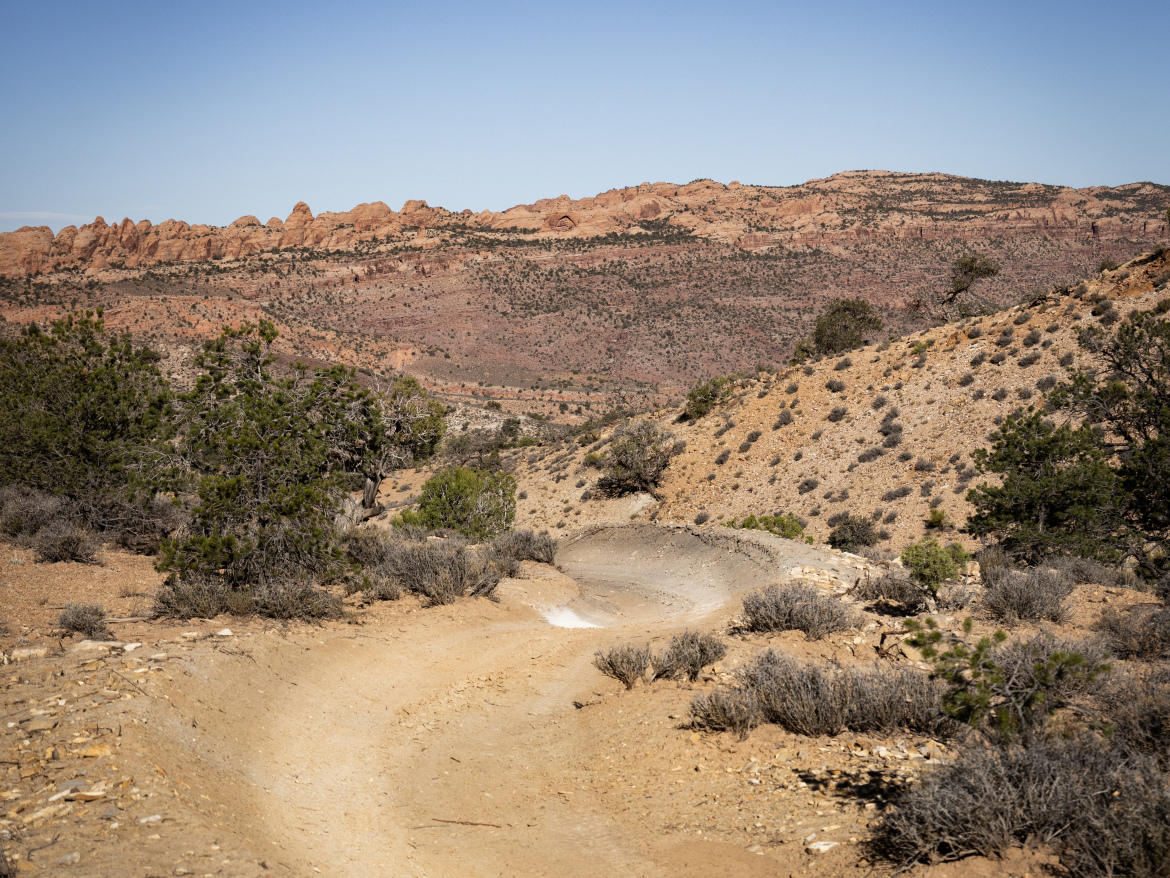 Phase one of construction was focused on beginner-friendly, flowy singletrack. But “it’s not flat beginner,” Swasey emphasized. Instead, the trails go up and over some respectable terrain, providing flowy climbs and descents filled with berms — a first for Moab.