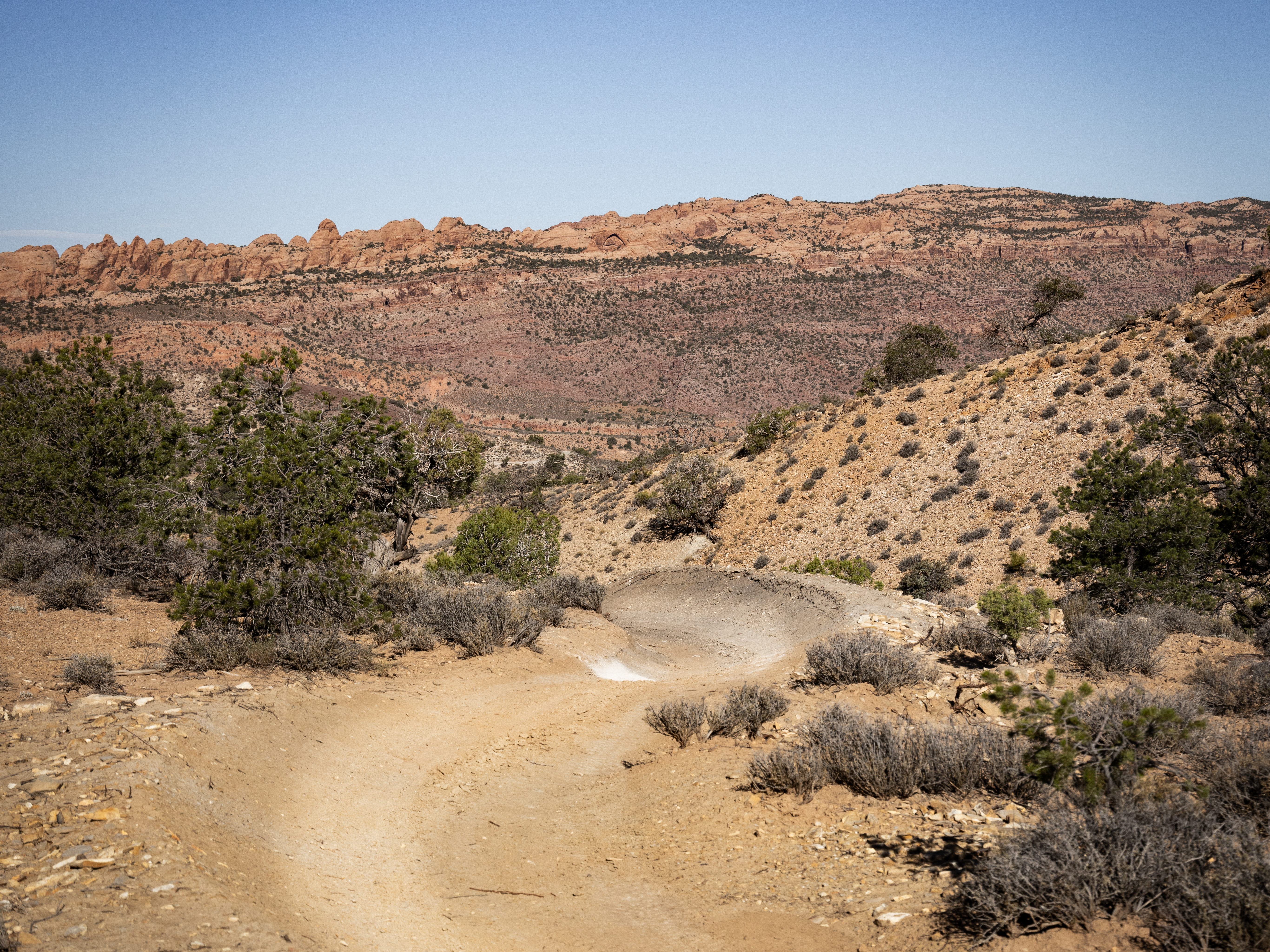 Phase one of construction was focused on beginner-friendly, flowy singletrack. But “it’s not flat beginner,” Swasey emphasized. Instead, the trails go up and over some respectable terrain, providing flowy climbs and descents filled with berms — a first for Moab.