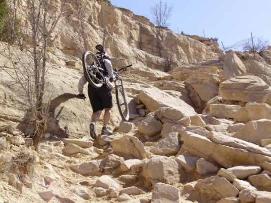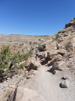 Soon you hit hike-a-bike #2 and right after that the climb begins up and around to the backside of Horsethief. This part rolls through a dry wash, up and over ledges back to the start.