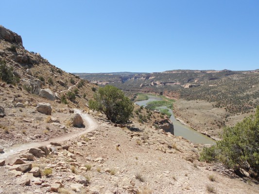 1. Horsethief Bench – This is, as you’ve heard before, a classic western Colorado ride. After climbing up Mary’s and then cruising along a bit of doubletrack (about 2 miles), you’ll hop over the cattle guard and stare down the hike-a-bike of the Horsethief Bench entrance. Rideable by some, hikeable by all! Once you get to the bottom you might want to lower that seat post a tad because you’ve got several drops headed your way. The front side of Horsethief is filled with drops, ledges, and river views.