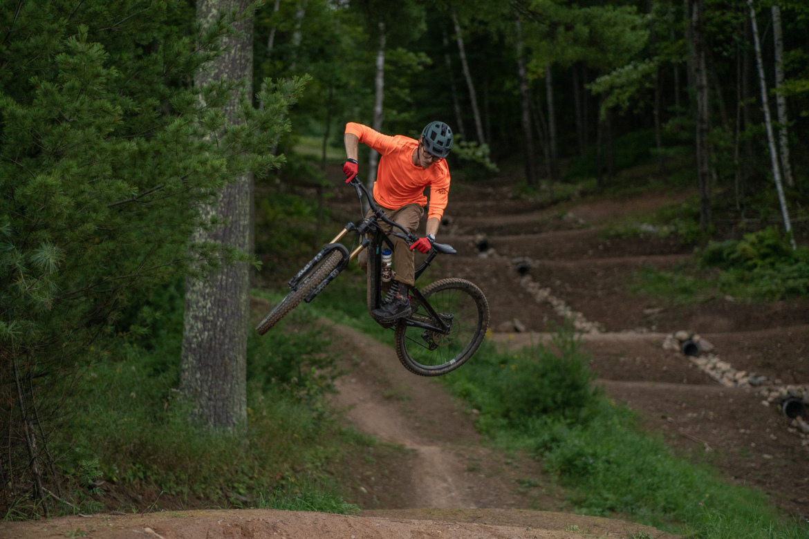 These steep hillsides provide the perfect terrain for building modern bike park-style trails served by one or two climbing routes, where the focus is on the downhill flow and technical challenge. The free public bike park being built on Mt. Telemark in Northern Wisconsin exemplifies this trail building style. While Northern Wisconsin is home to hundreds of miles of rolling cross-country bike trails, Telemark now provides some of the region’s first high-speed downhills, including berm- and jump-filled flow trails.