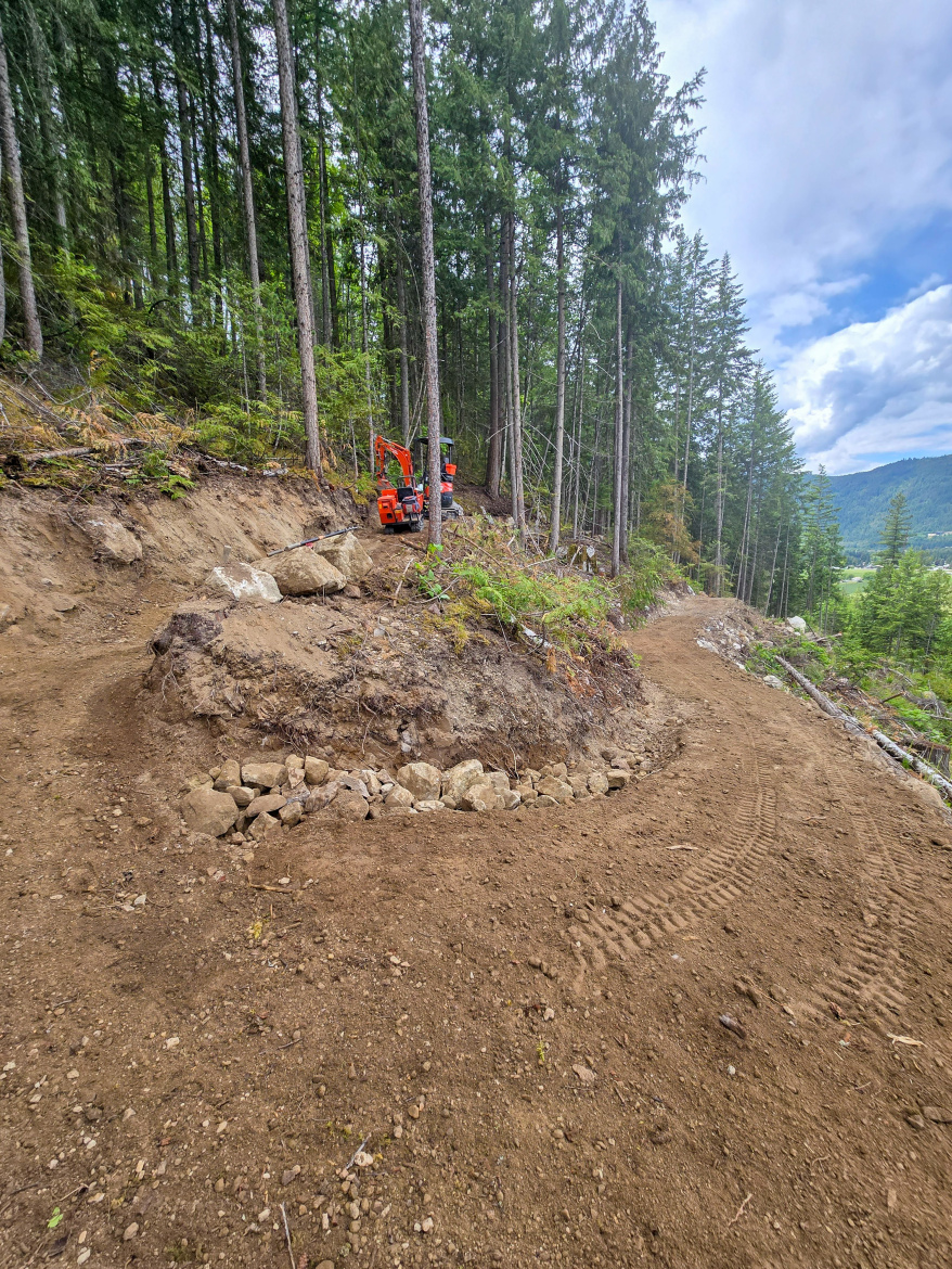 Bostock told Singletracks that new trail projects usually take about five years to be approved. Since the majority of BC is Crown land, approval for new trails must come from the land manager, Recreational Sites and Trails BC. Additionally, the Splatsin (pronounced Spla-jeen) First Nation also had to approve the project before any site work could begin because of the land’s cultural significance.
