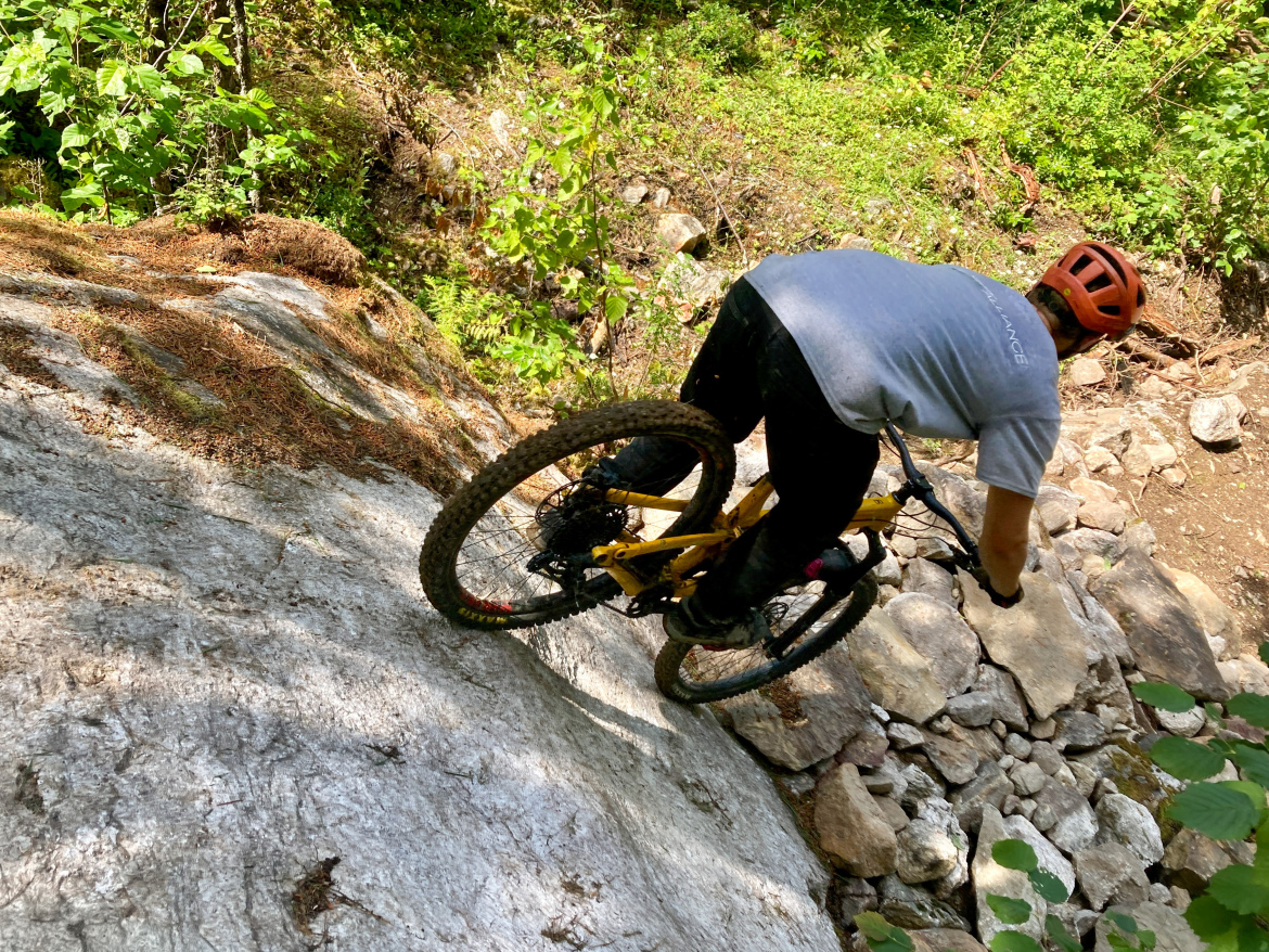 On top of that, the site’s slope is very steep: upwards of 60% in places. Consequently, Timmer had to work hard to build the trail within provincially-approved grades. “On one section of the green climbing trail, there are 11 switchbacks within 700m (0.44mi) to make it fit within the grade for a green trail,” said Timmer.