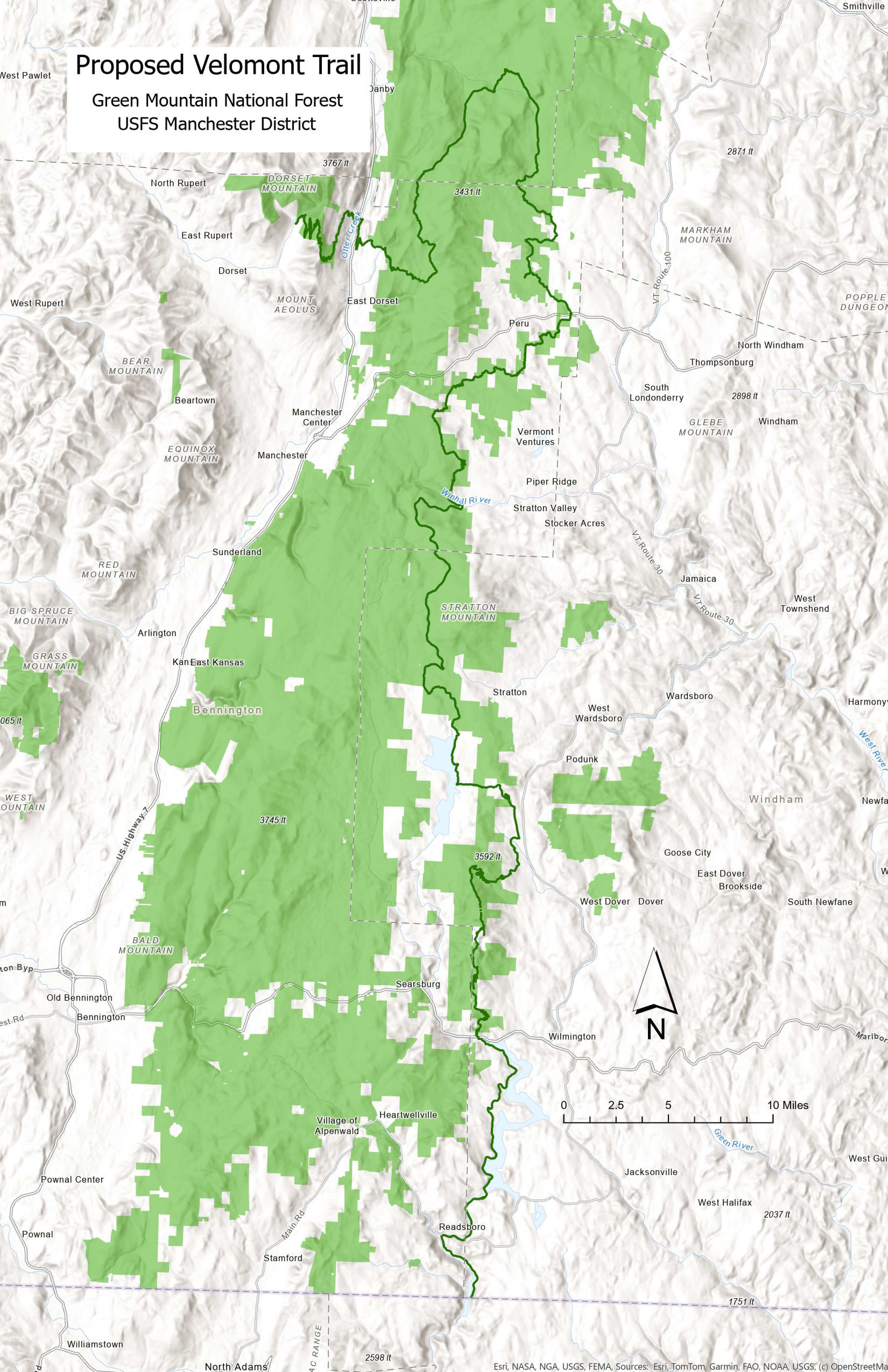 The Green Mountain National Forest is the only national forest in Vermont, and it’s split into two different ranger districts: the Manchester and the Middlebury/Rochester. The biggest Velomont news is the 72 miles of newly-approved trail in the Manchester District.